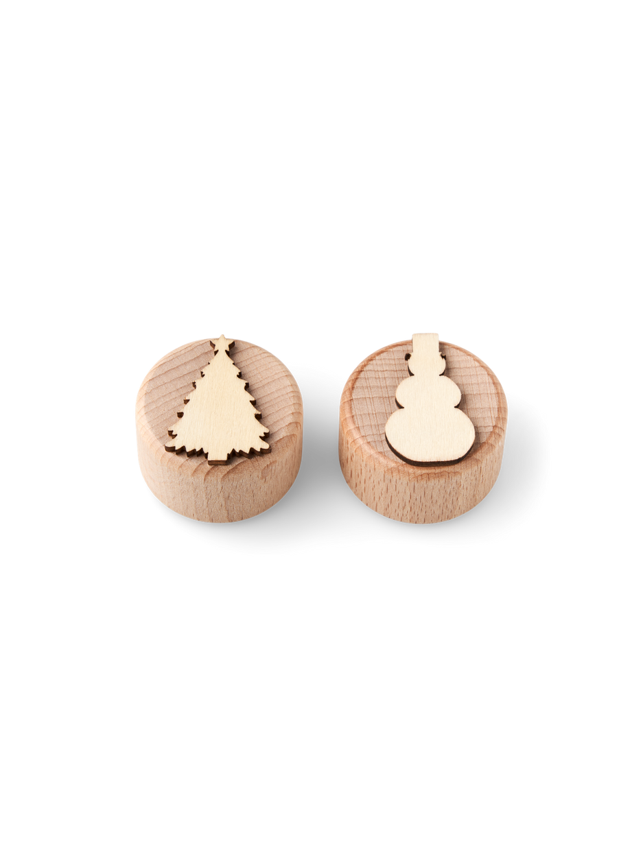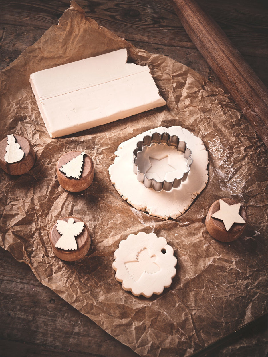 The sisters' clay stamps are made of FSC®-certified beech wood and plywood and each stamp measures Ø4 x 2.5 cm. The stamps are especially suitable for clay.