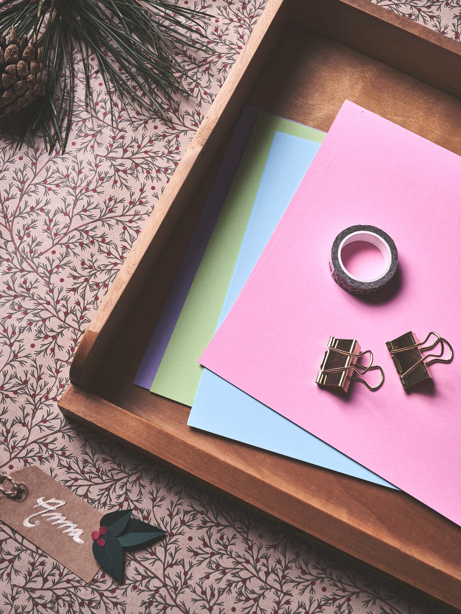 The sisters' hobby cardboard is FSC®-certified, is 230 gsm, and has an A4-format. A packet contains 12 sheets in 4 assorted colours.
