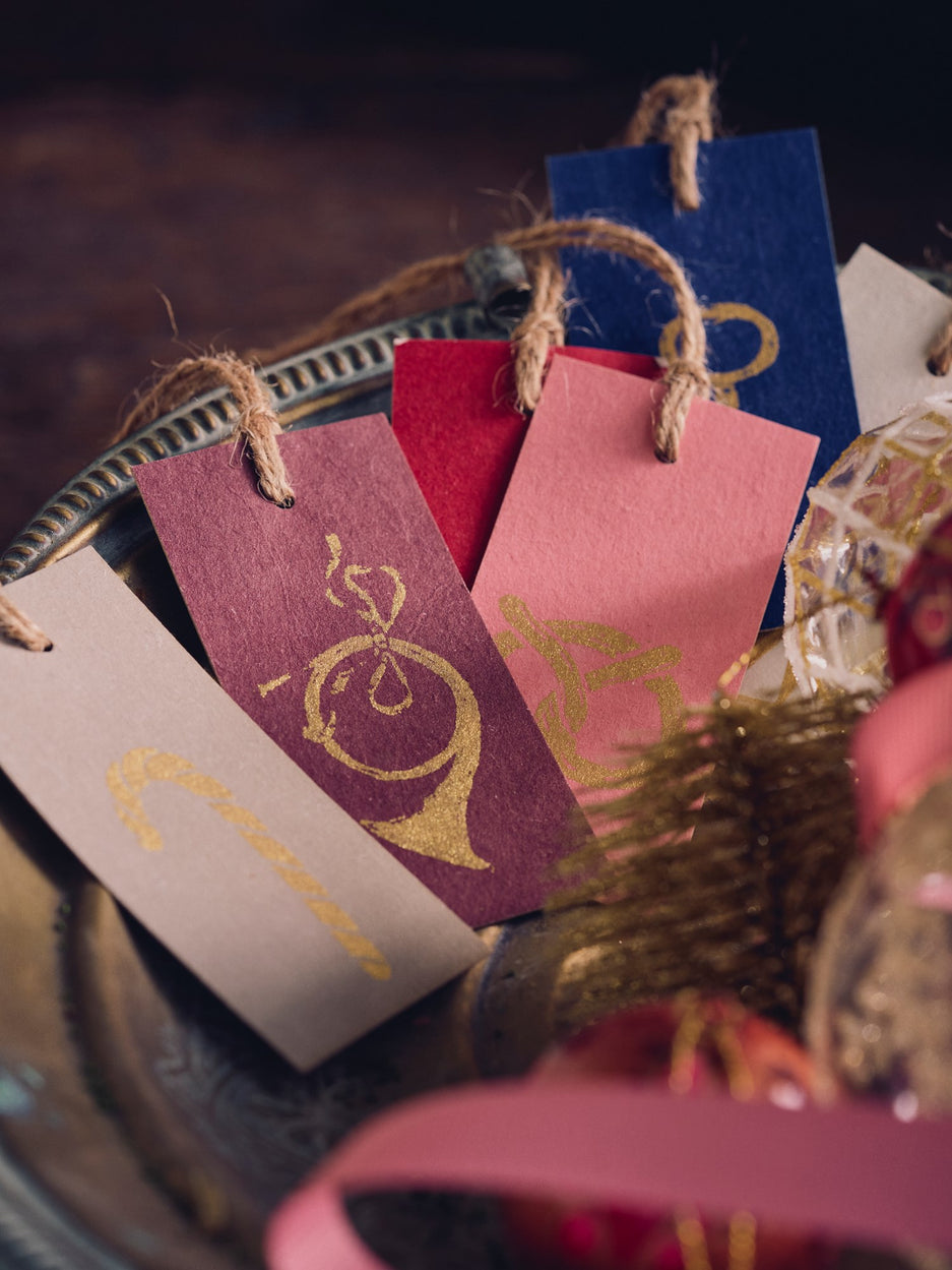 The wrapping is half the joy of a present, the sisters believe. That is why they are particularly fond of the gift tags made of cotton paper.