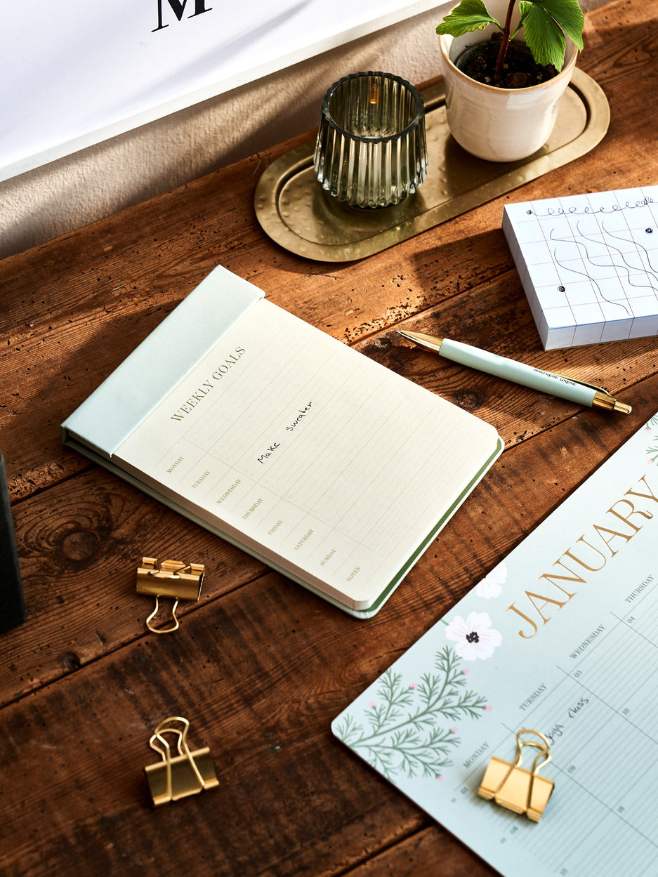 The sisters' weekly goal planner has a back cover made of PU and a magnet in the holder. The planner has 70 sheets of 100% FSC®-certified paper and perforation at the top.