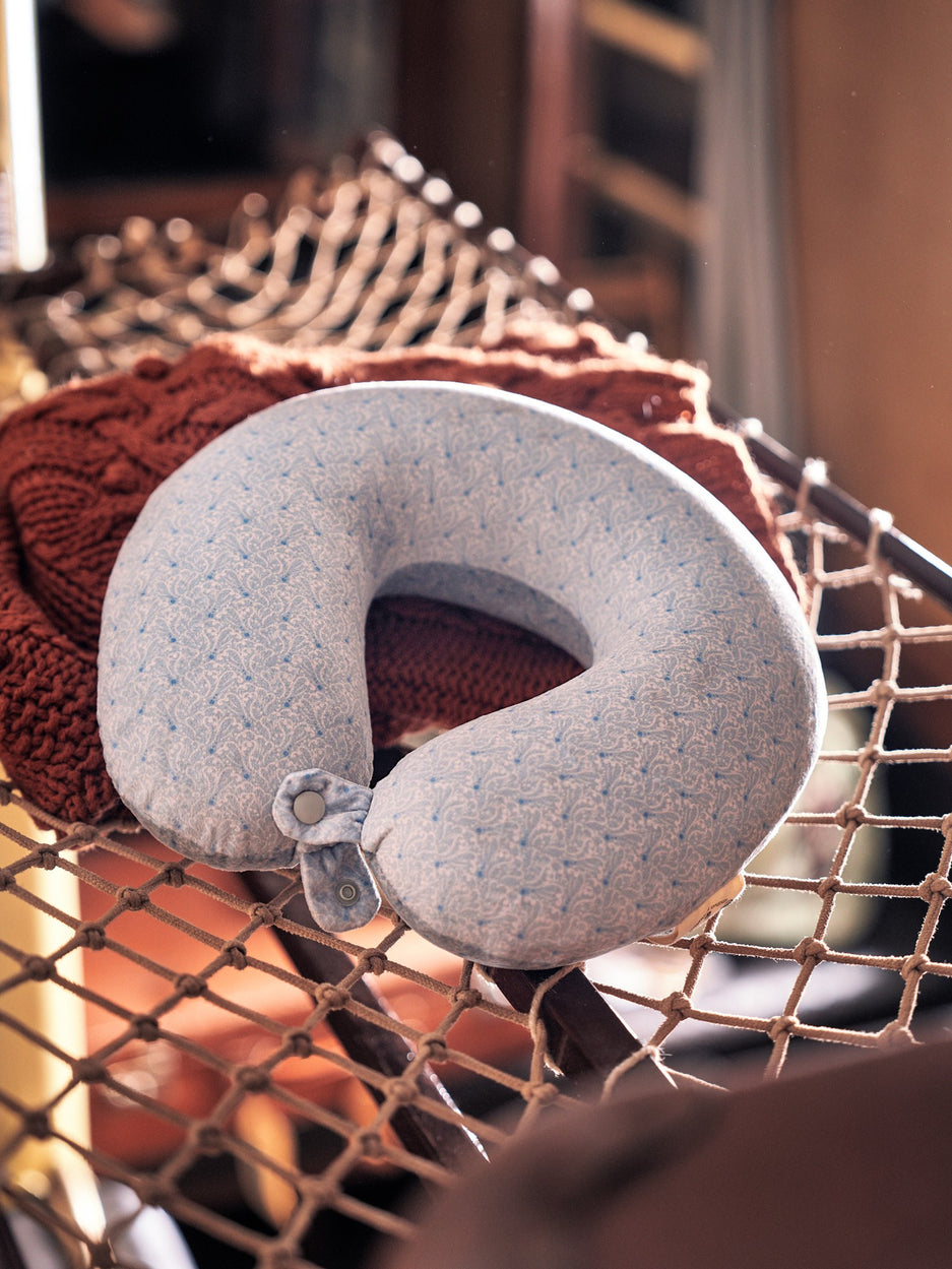 The sisters' neck pillow is made of STANDARD 100 by OEKO-TEX®-certified polyester and polyurethane, and it is the perfect companion on longer travels.
