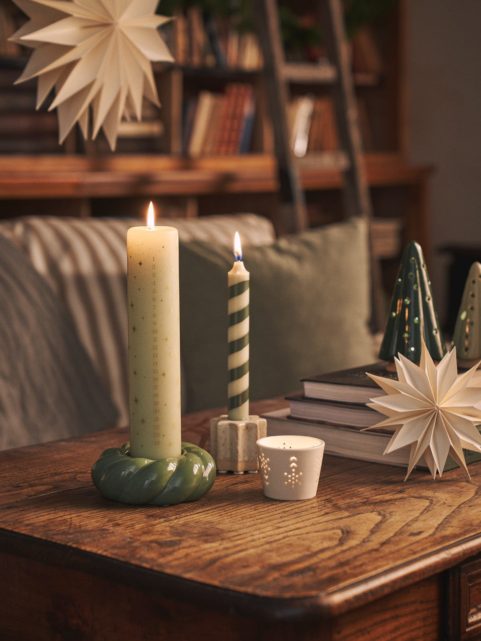 The sisters' striped candles are made of stearin and paraffin wax and measures Ø2.2 x 19 cm. There are two candles in a packet and they have a burn time of approximately 7 hours. Furthermore, the candles carry the Nordic Swan Ecolabel.