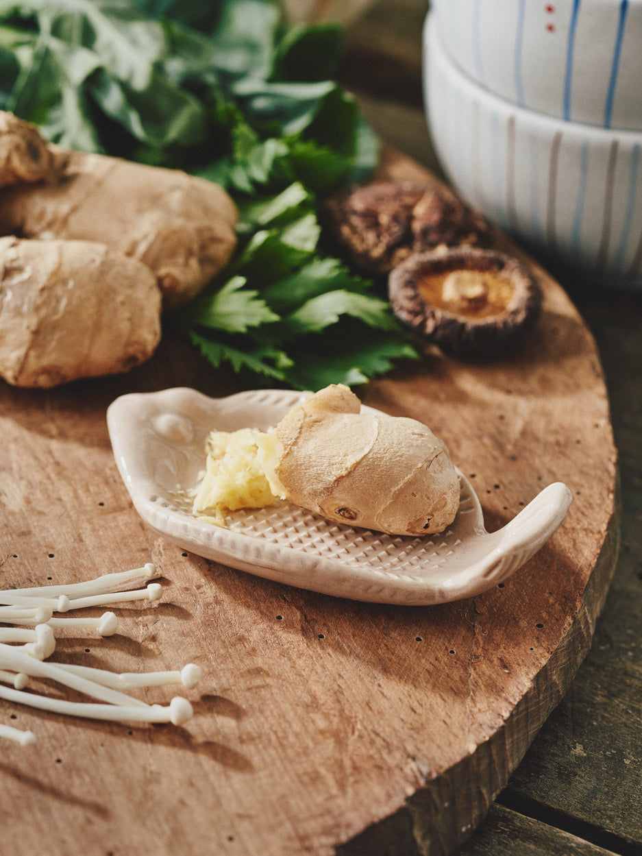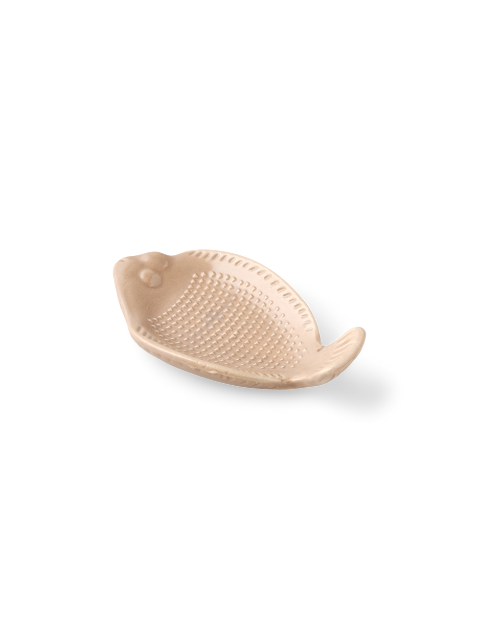 You can use this fish-shaped grater plate to finely grate garlic or fresh gingers.