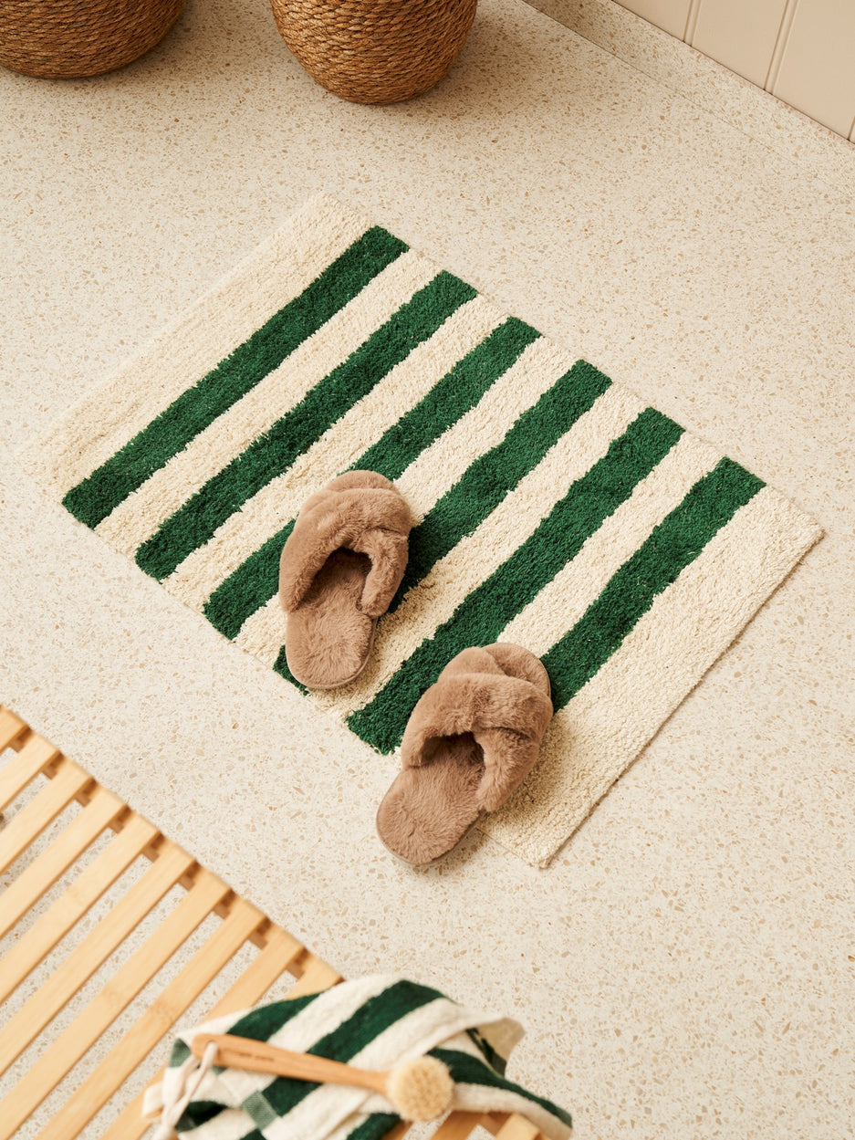 The sisters' bath mat is made of STANDARD 100 by OEKO-TEX®-certified* cotton and measures 50 x 70 cm. On the back, it has an anti-slip surface.