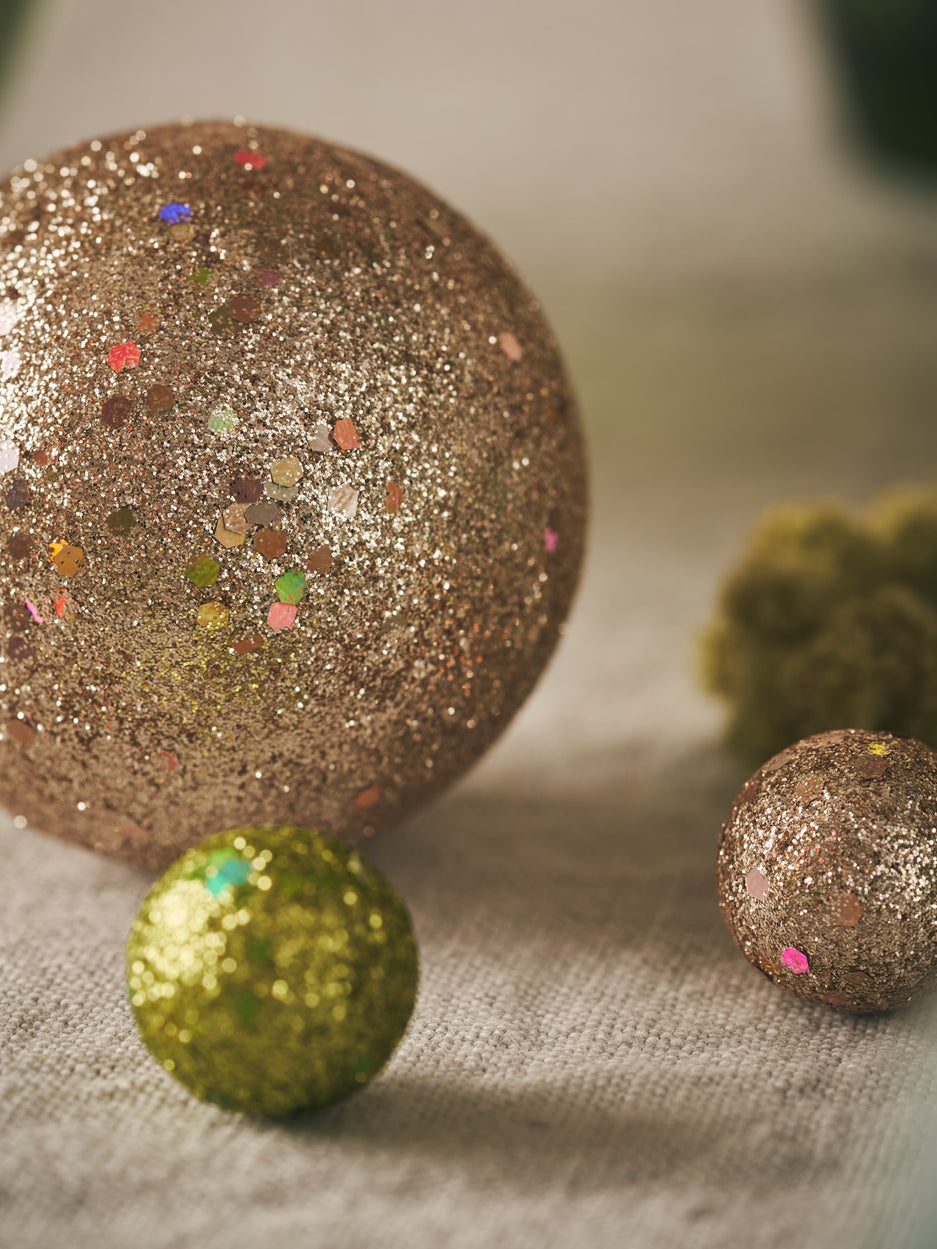 The sister's glitter balls for DIY projects are made of polystyrene. The balls come in a set of 6 and have a respective diameter of 2 and 6 cm.