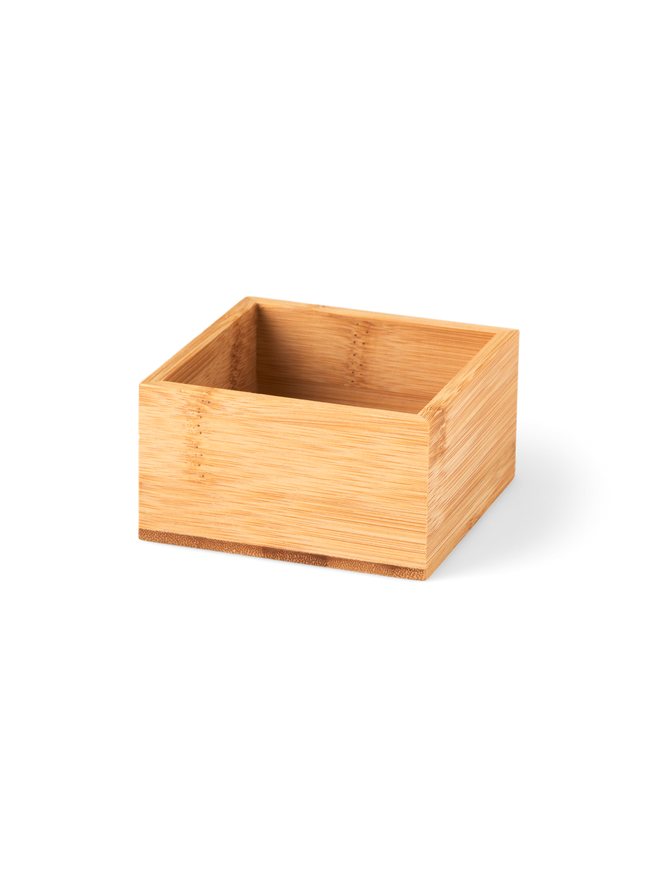 The sisters' tray is made of 100% FSC®-certified bamboo, and it measures 9.3 x 9.3 x 5 cm.