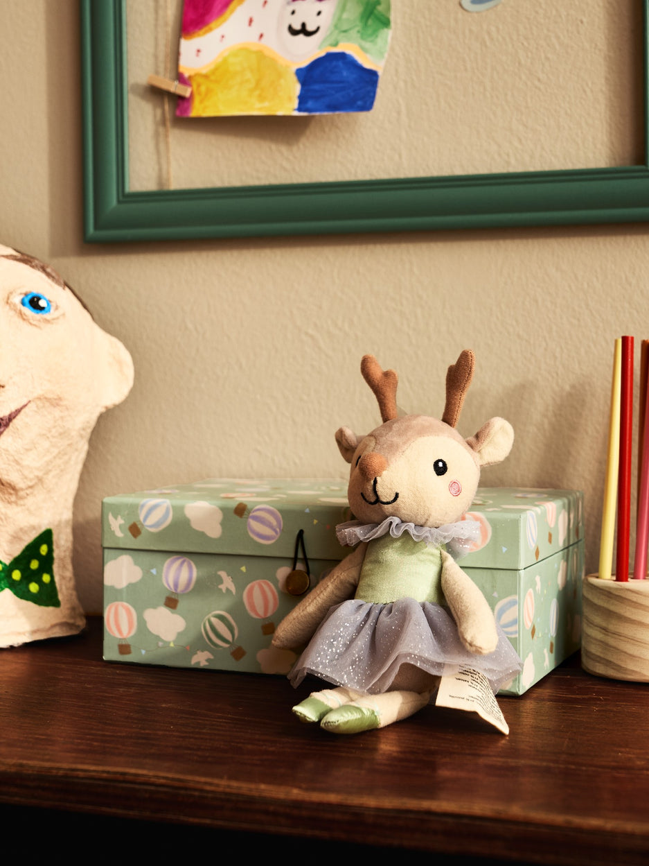 This soft toy ballet dancer deer is made of STANDARD 100 by OEKO-TEX®-certified* cotton and polyester. The sweet deer has a height of 26 cm.