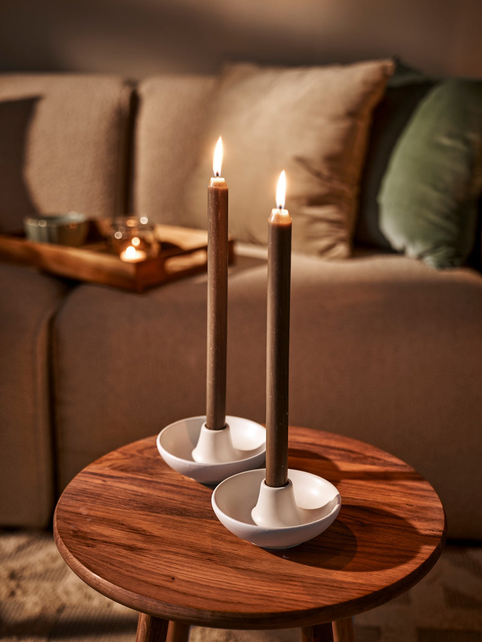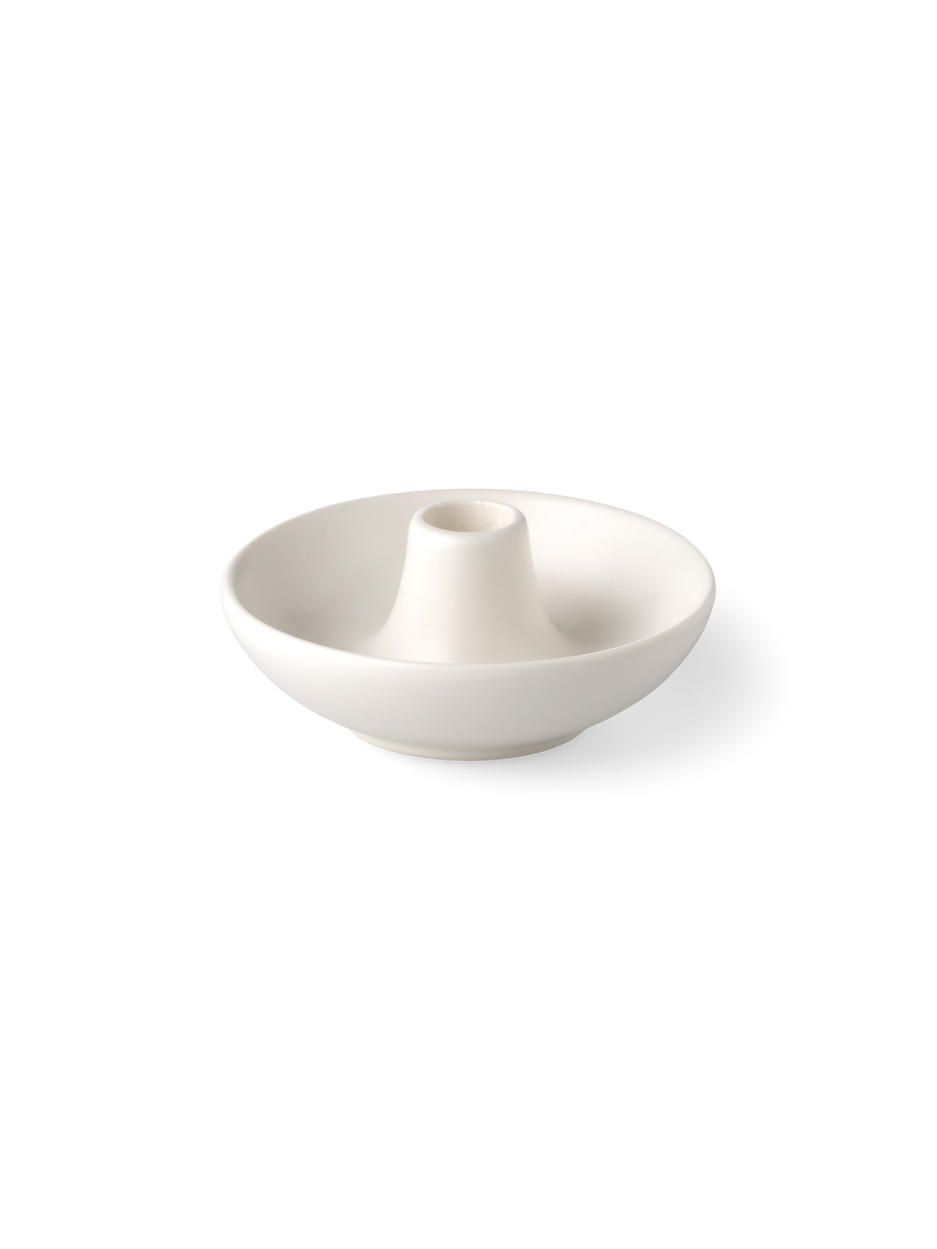 This porcelain candleholder measures 12 cm in diameter and 5 cm in height.