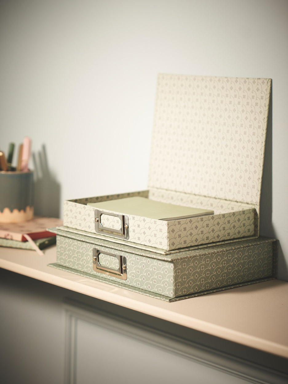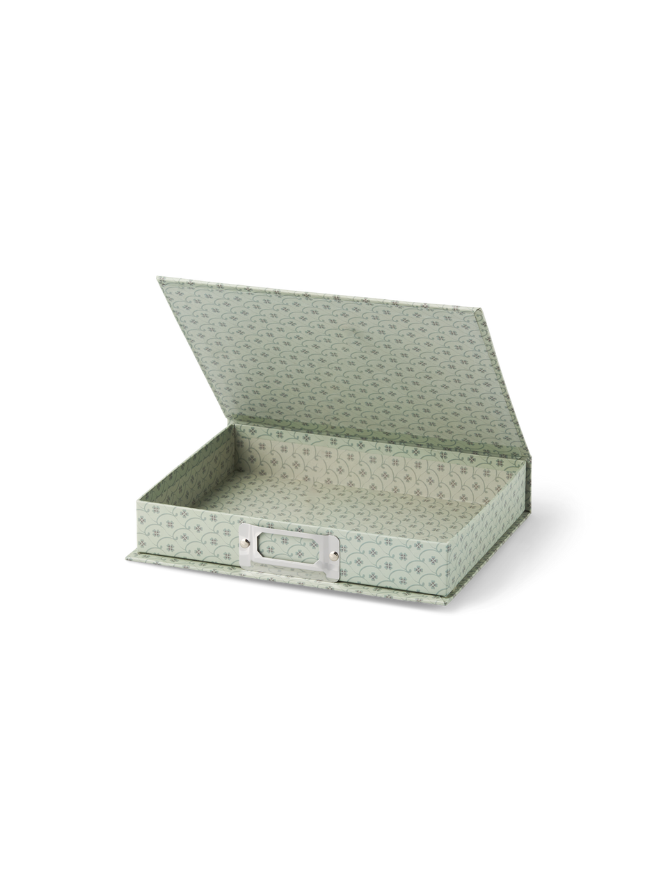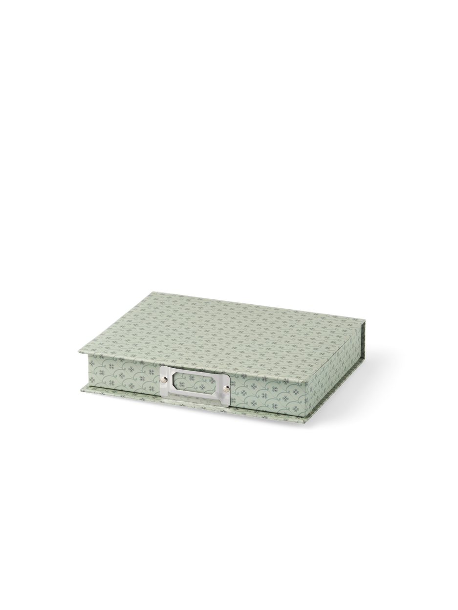 The sisters' box is made of FSC®-certified paper and has a stainless steel slot for labels.