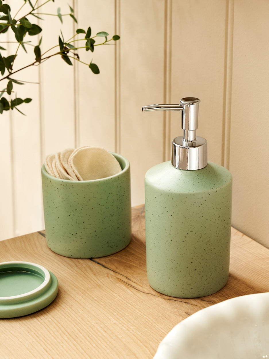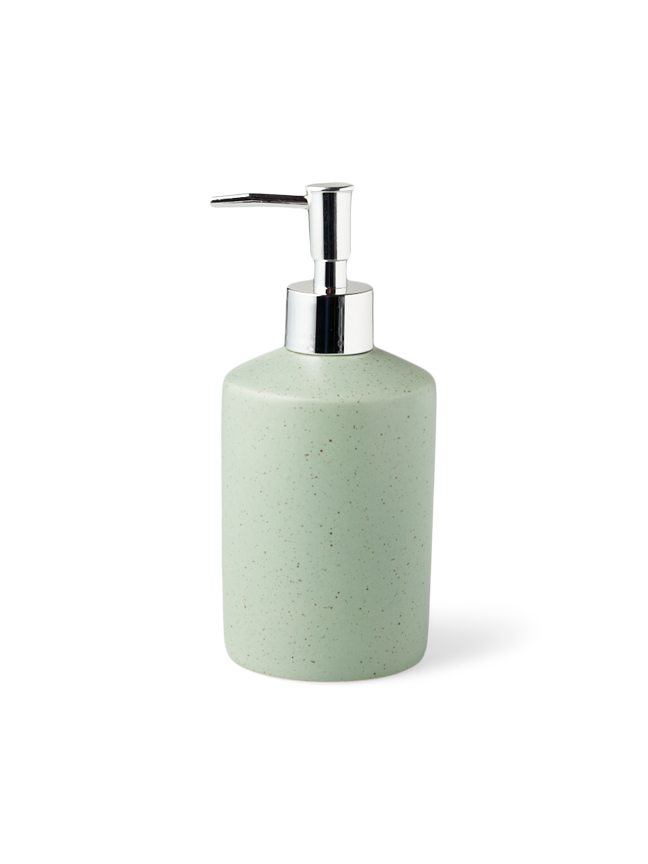 The sisters' soap dispenser is made of stoneware and measures Ø8 x 18 cm.