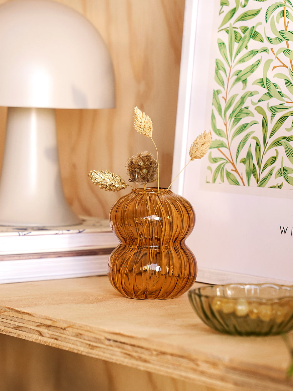 The sisters' vase is made of glass and measures Ø7 x 8 cm.