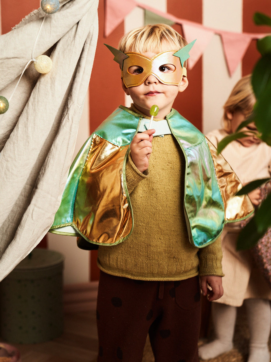 The sisters' dress-up cape is made of STANDARD 100 by OEKO-TEX®-certified polyester and cotton. It has a hook-and-loop fastener for wearing.