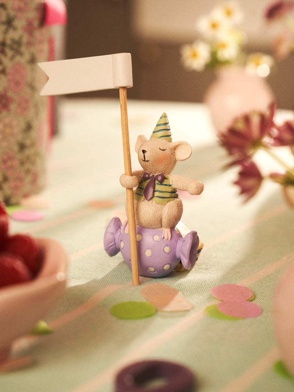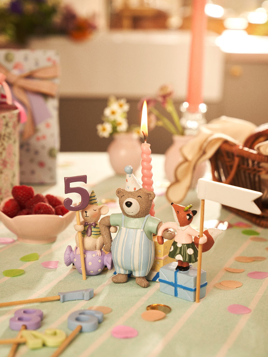 The sisters' birthday figurine is made of polyresin and can hold a birthday number in its little hand.