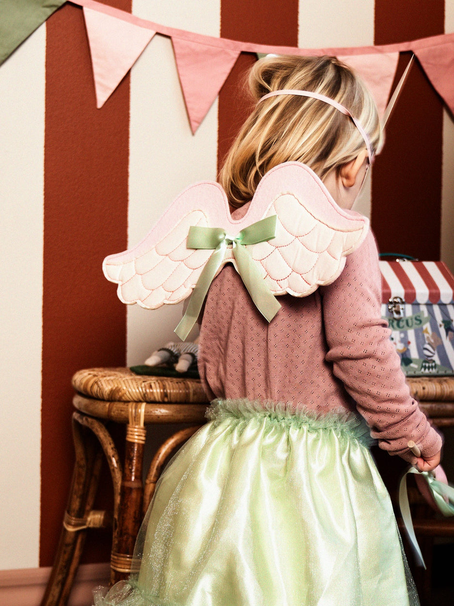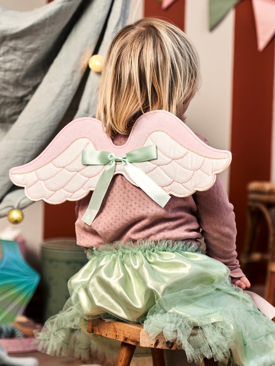 The sisters' dress-up wings are made of STANDARD 100 by OEKO-TEX®-certified polyester and measure 45.5 x 16 cm. They have elastic straps for wearing.