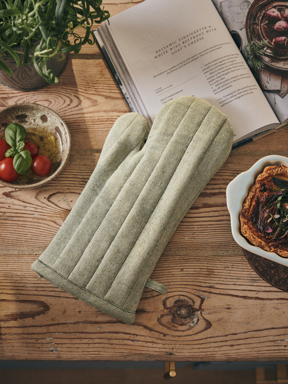 The sisters' oven glove is made of STANDARD 100 by OEKO-TEX®-certified cotton and polyester, and is a lovely addition to any kitchen.