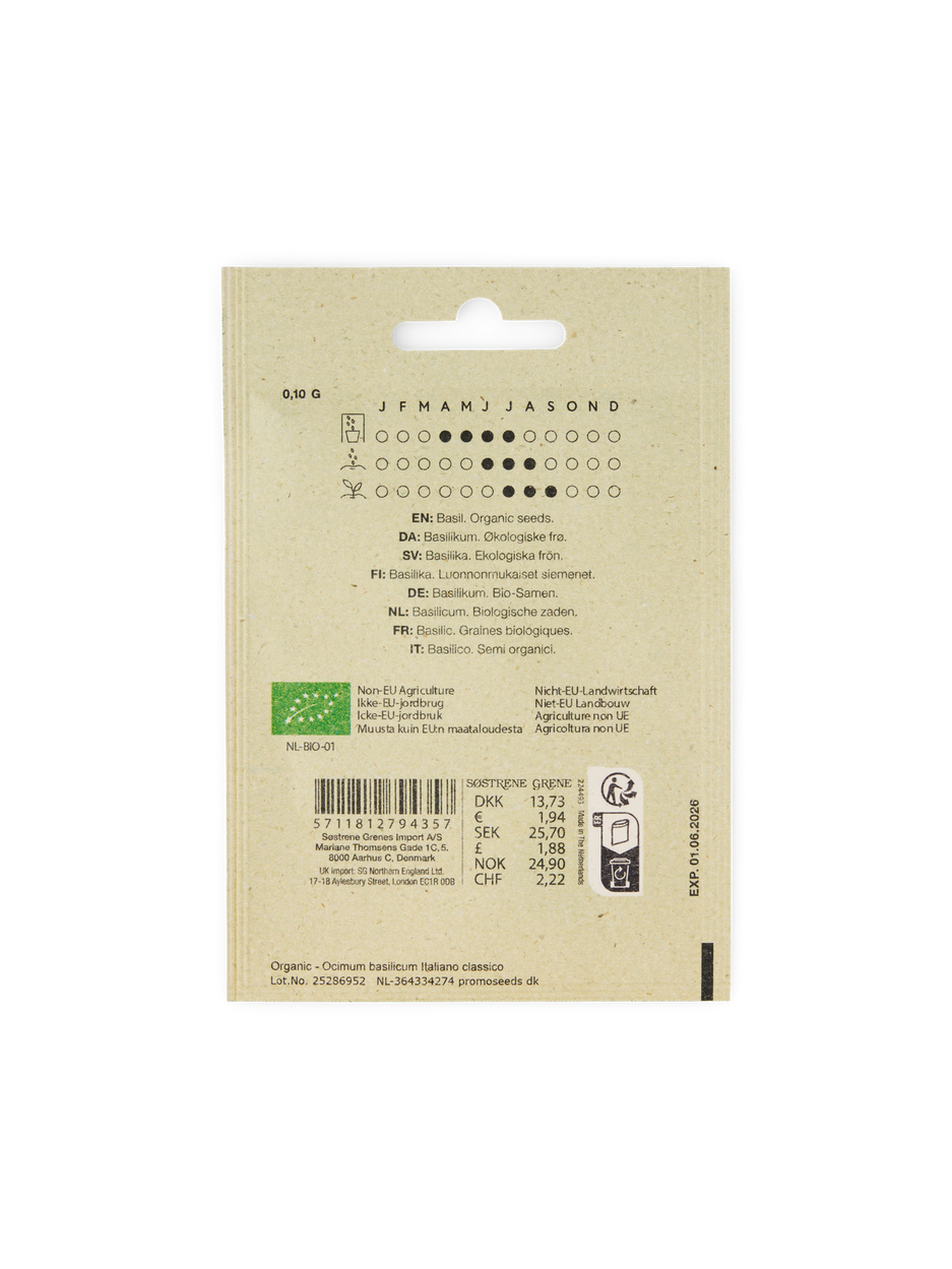 The sisters' basil seeds are organic. There is 0.01 g in a packet.