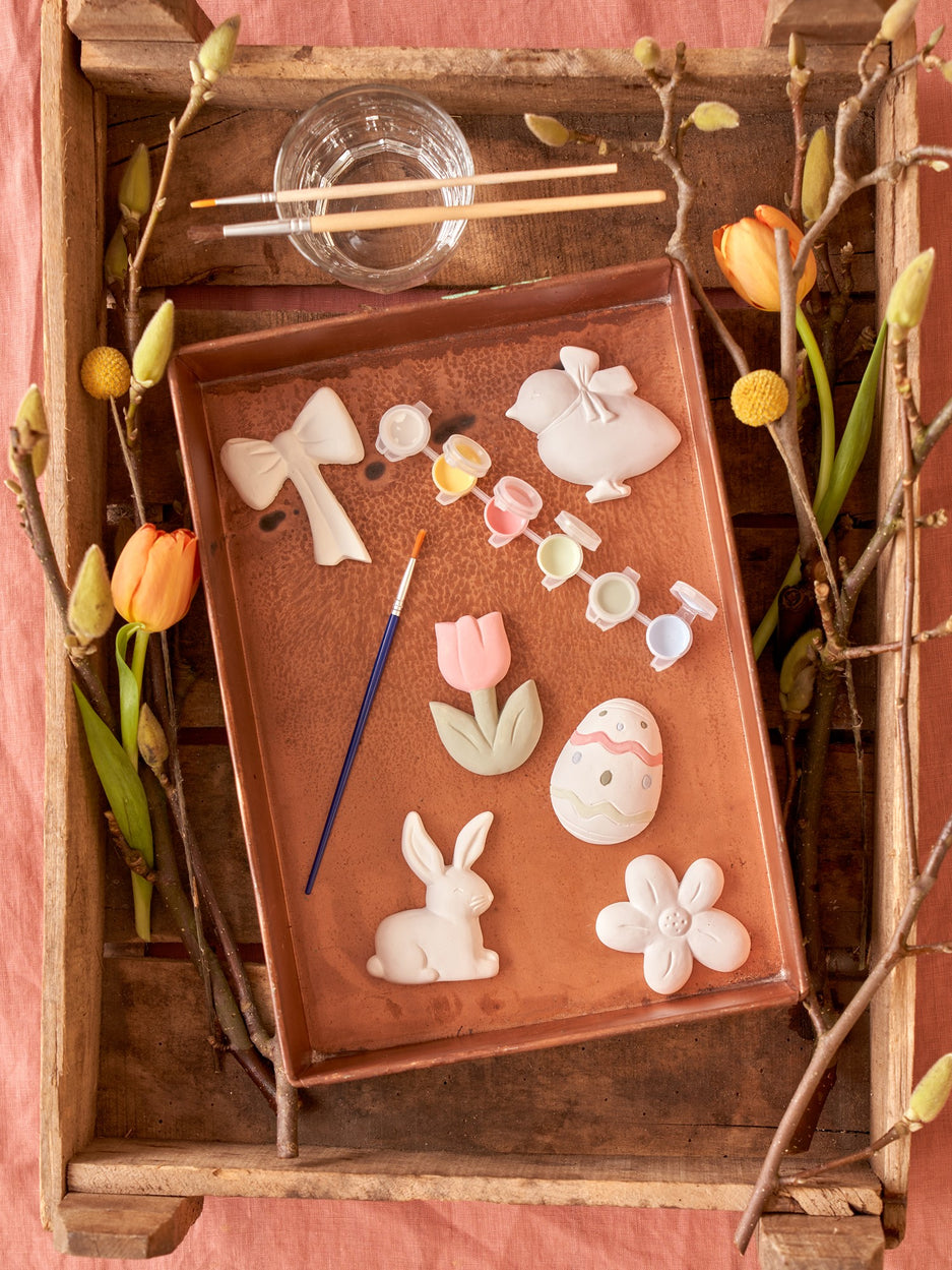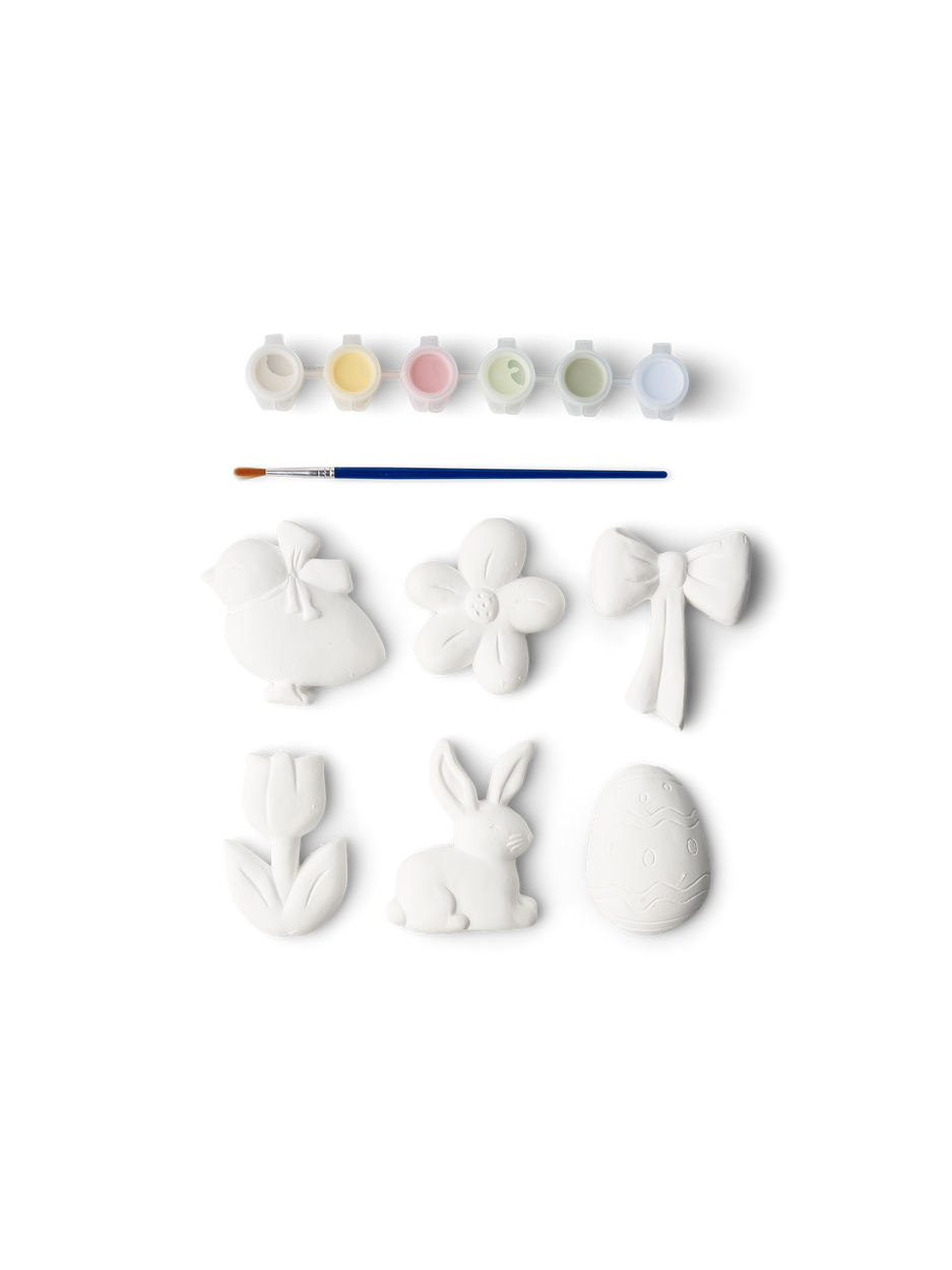 The sisters' DIY kit is a fun activity for all ages and adds a charming touch to your Easter décor. The kit includes 6 figurines, paints, and a paint brush.