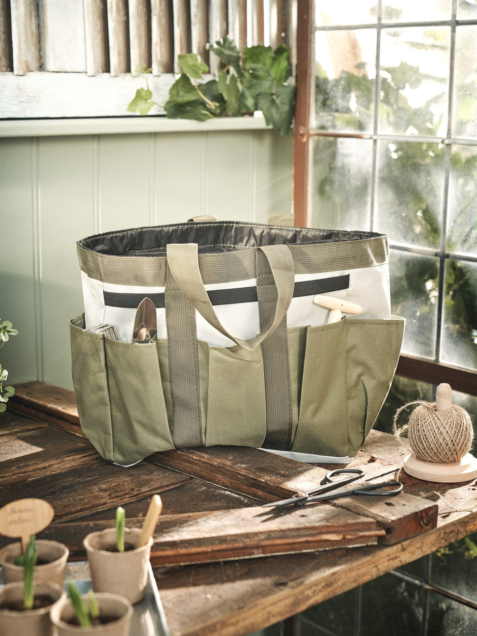 The sisters' gardening bag is made of polyester and has plenty of compartments and pockets for all your gardening equipment.