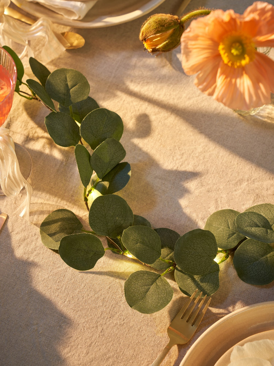 The sisters' string lights have artificial eucalyptus leaves for an atmospheric and decorative detail.