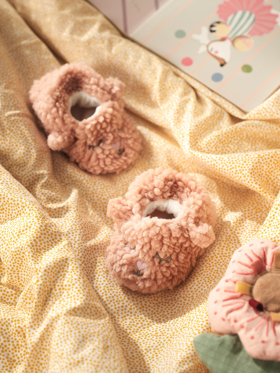 The sisters' baby slippers are made of STANDARD 100 by OEKO-TEX®-certified polyester and are a size 16/17.