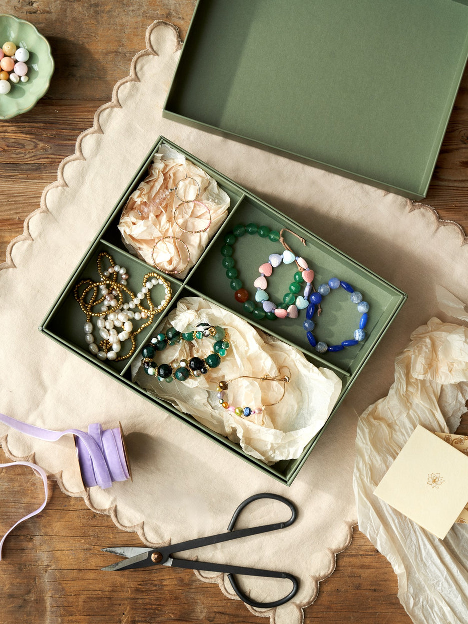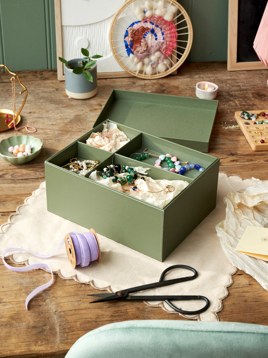 The sisters' storage box is FSC®-certified and has a removable extra tray with 4 compartments.