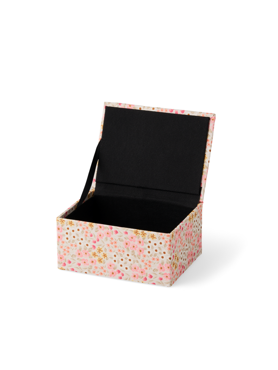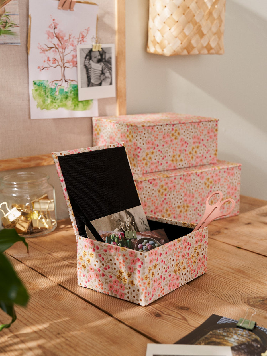 The sisters' storage box is FSC®-certified and is covered in beautifully patterned fabric.