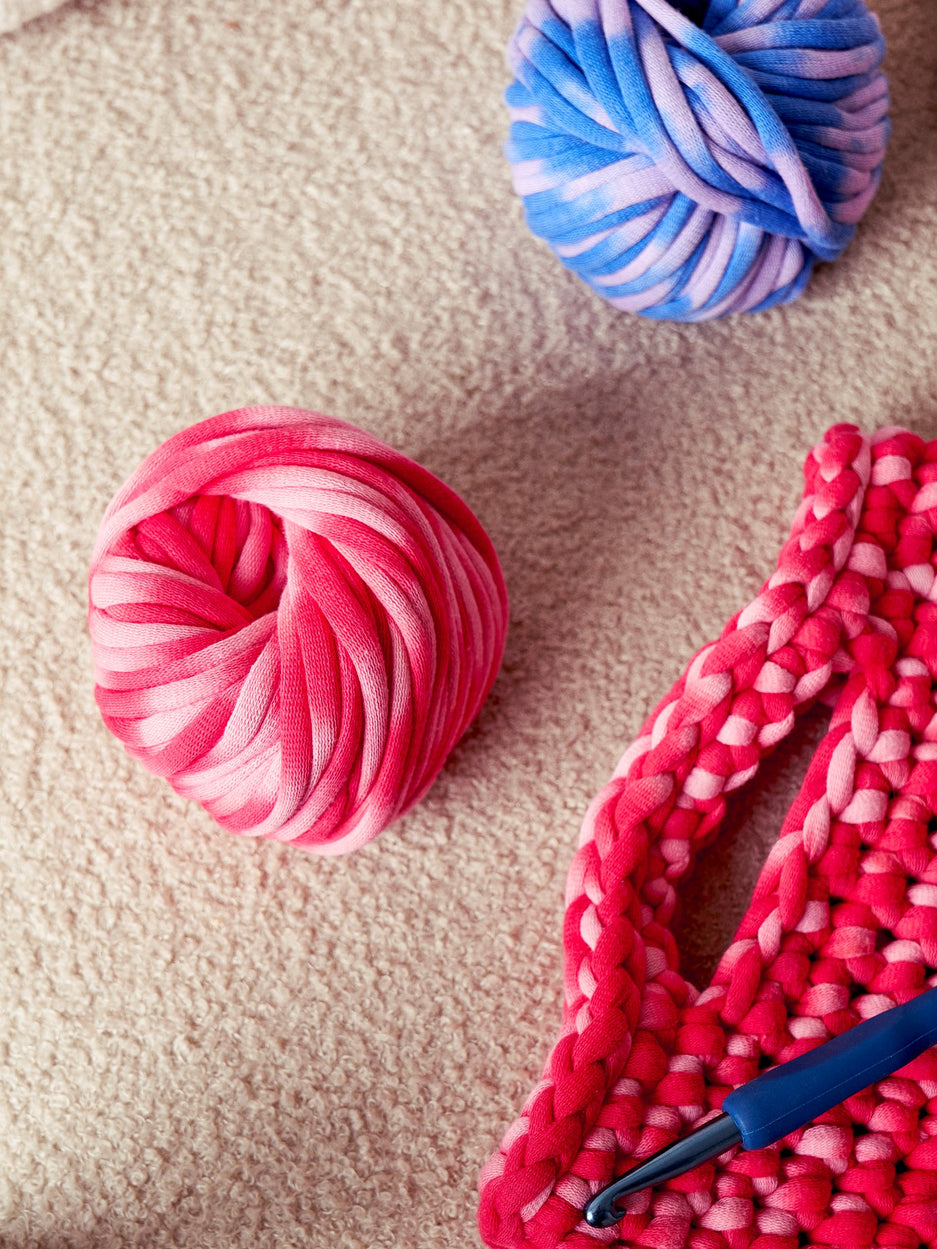 The sisters' ribbon yarn is STANDARD 100 by OEKO-TEX®-certified. It is made of 68% cotton and 32% nylon. Each ball of ribbon yarn weighs 50 g.