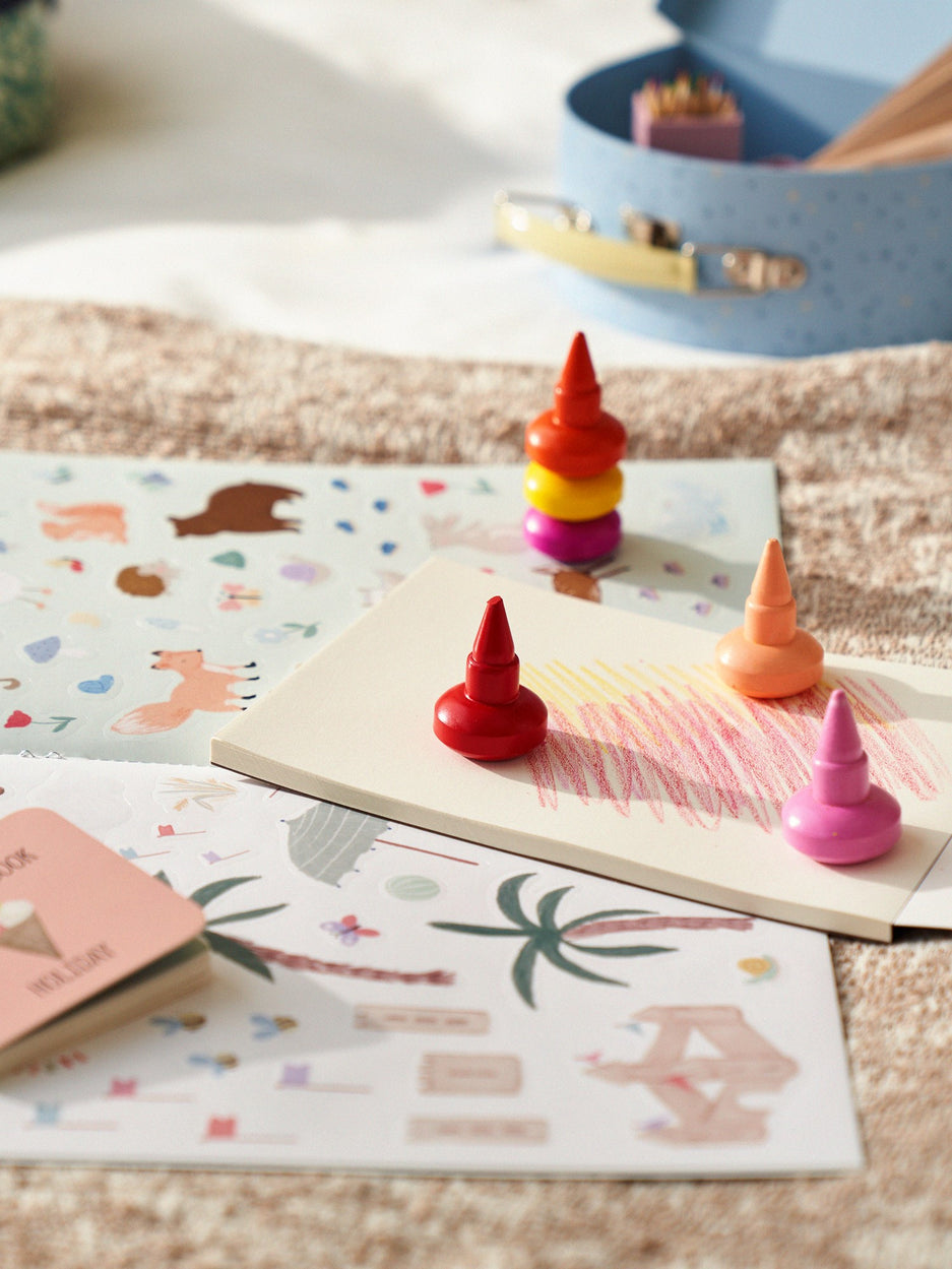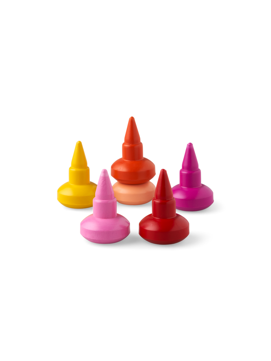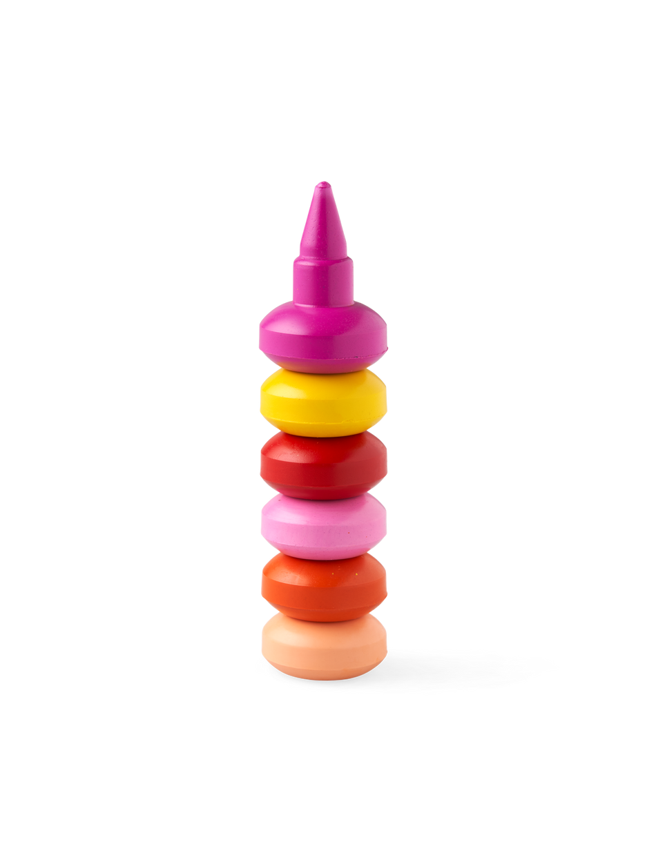 The sisters' crayons are stackable and come in a packet of 6 different colours.