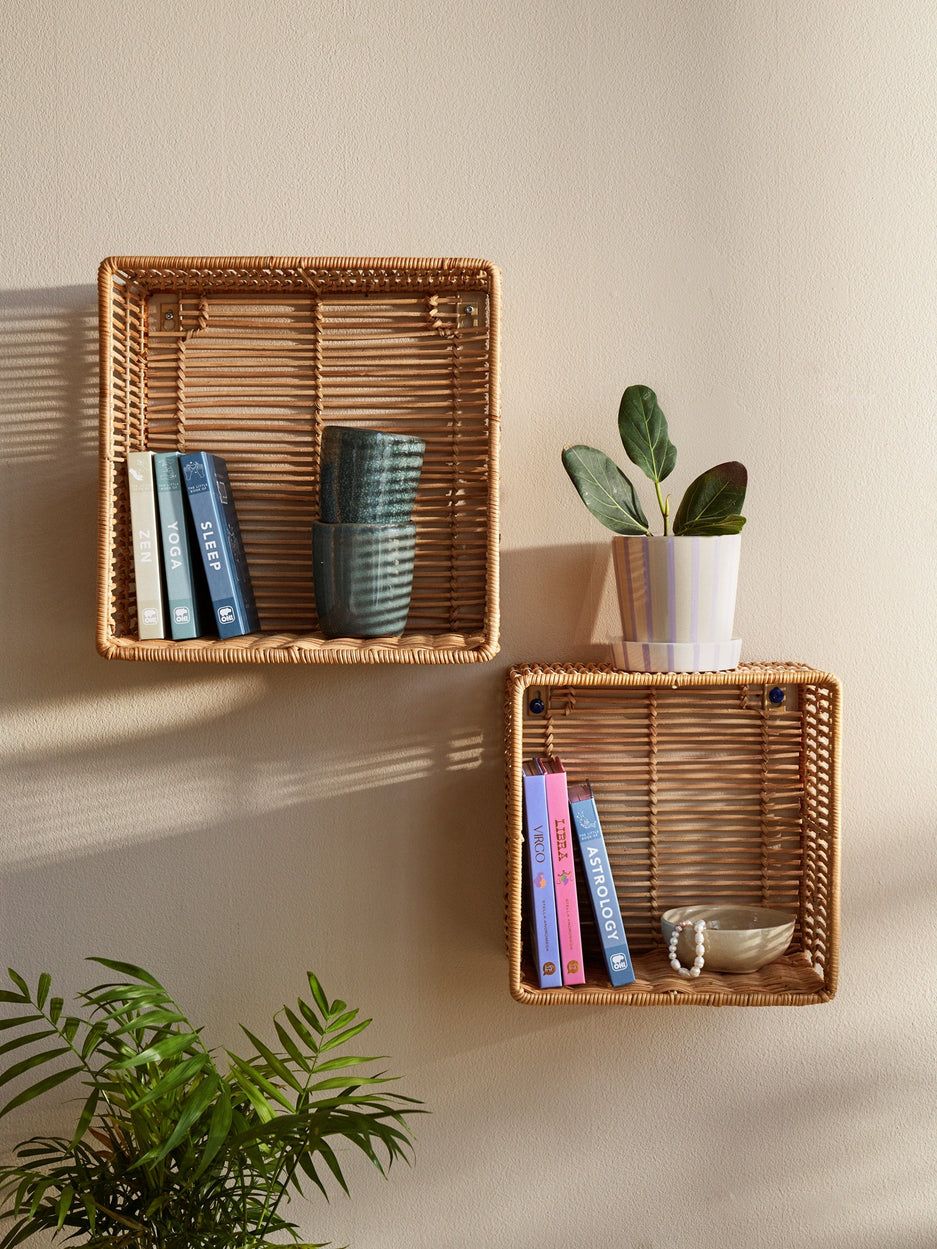 The sisters' shelf is an organic and stylish addition to any home. As it is partly made of rattan, the expression may vary slightly.