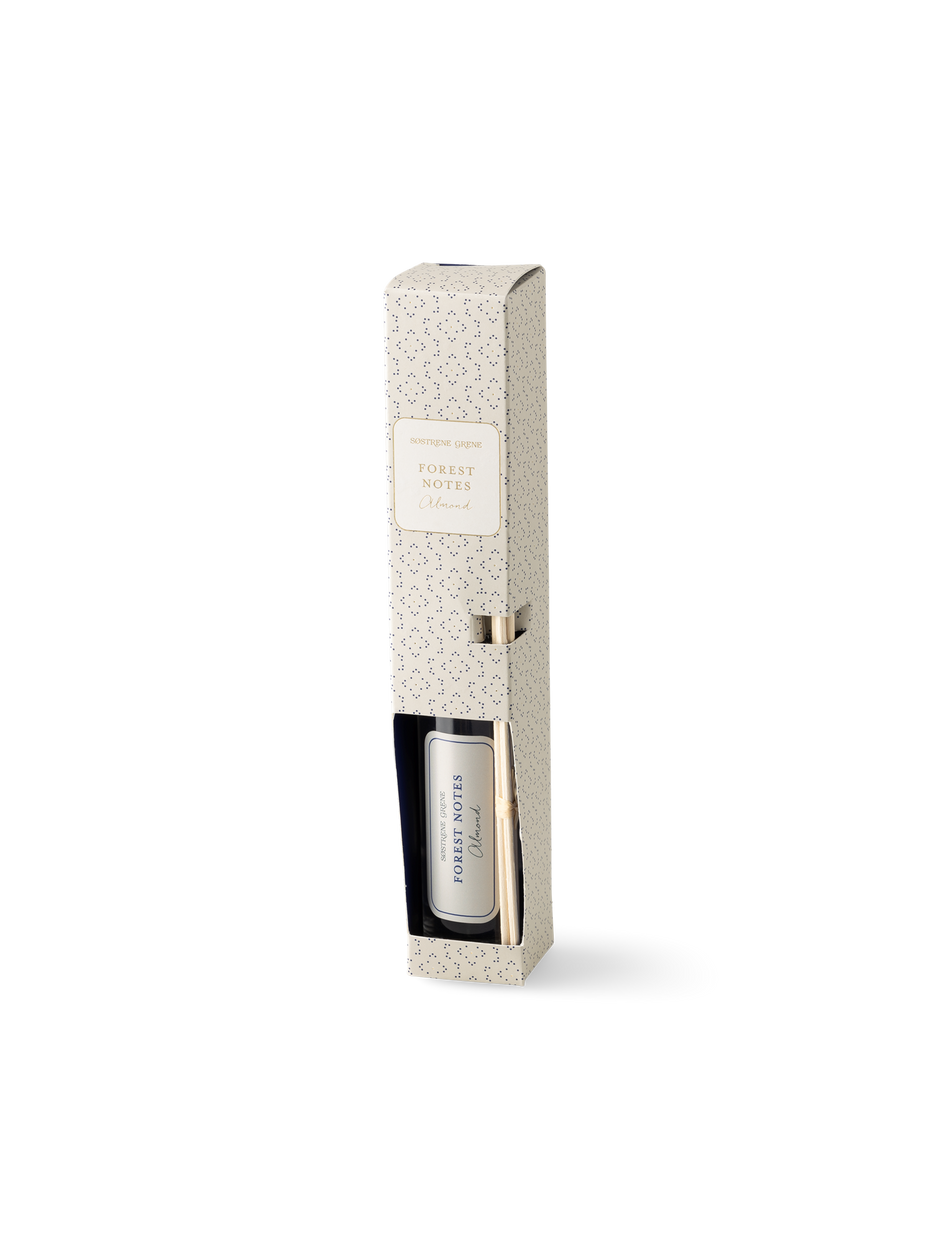 "Ah, the delightful aroma of a forest," Anna says, placing the scented reed diffuser on the table. "It truly brings a sense of tranquillity to any room," Clara adds, appreciating how the gentle fragrance enhances their cosy home atmosphere.