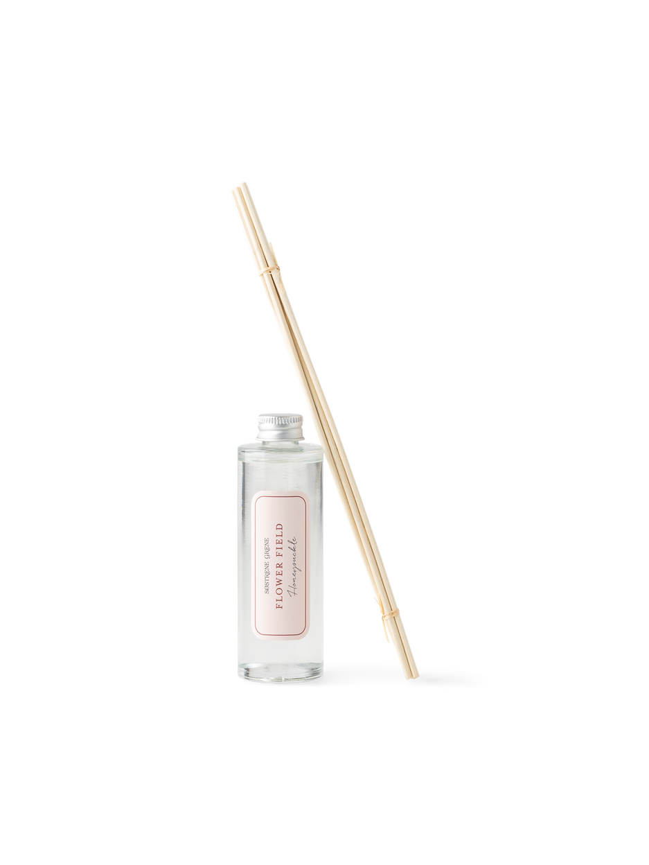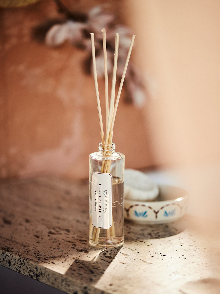 "Ah, the delightful aroma of a flower field," Anna says, placing the scented reed diffuser on the table. "It truly brings a sense of tranquillity to any room," Clara adds, appreciating how the gentle fragrance enhances their cosy home atmosphere.