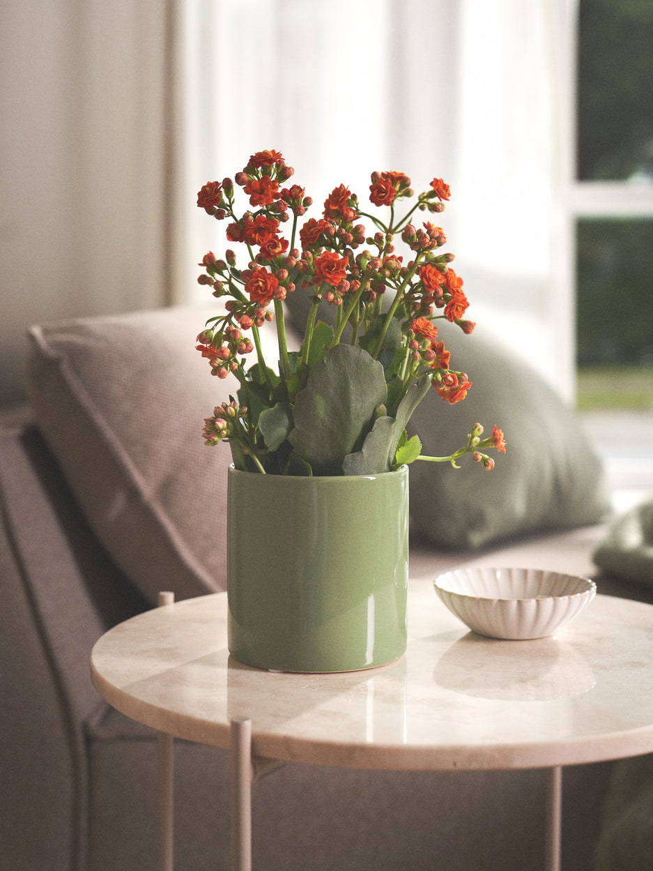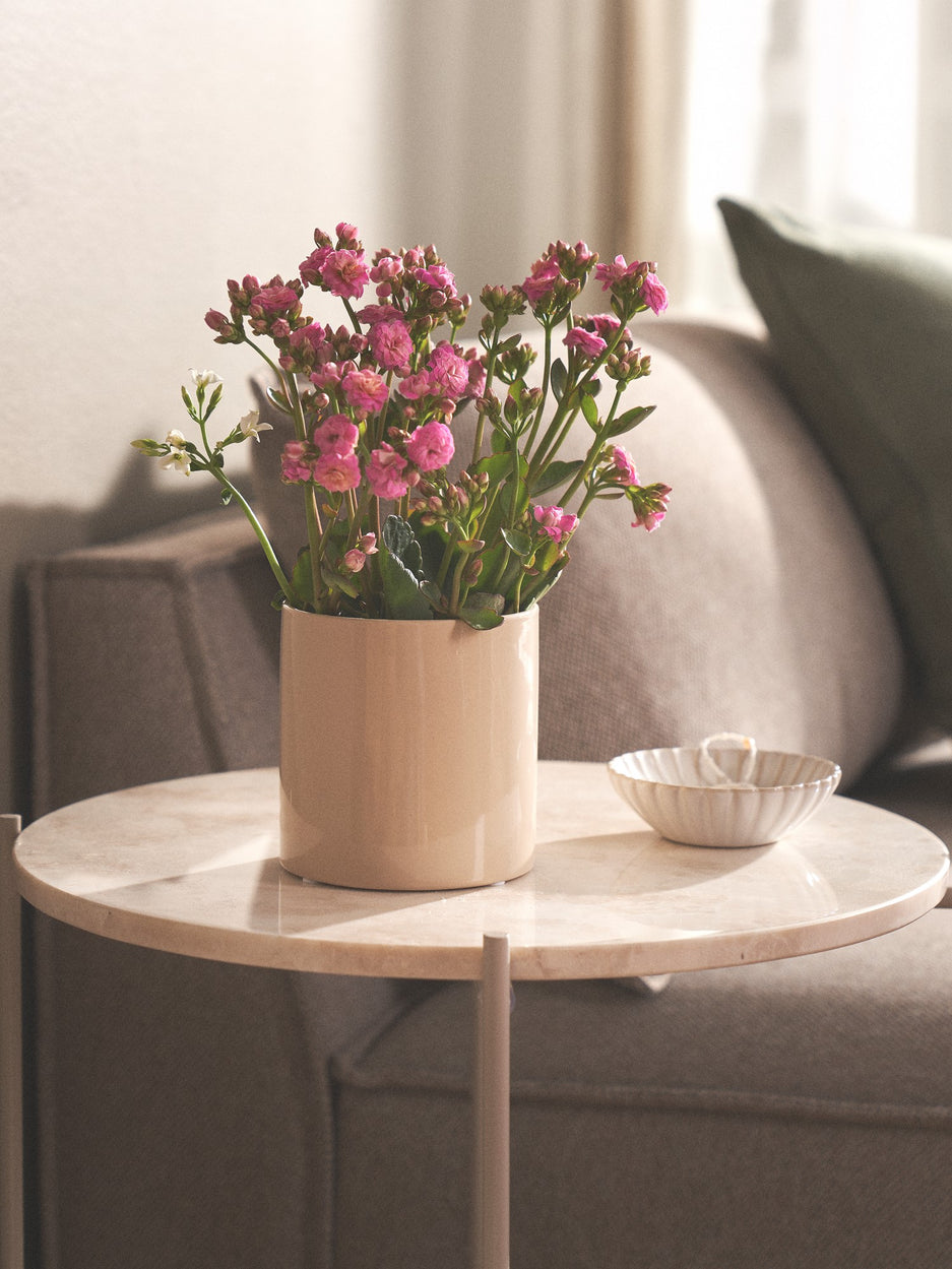 "You can place flowerpots in different materials and sizes together to create a unique display of your plants and flowers," Anna suggests.