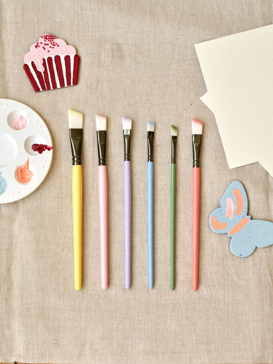 The sisters' paintbrush set comes with 6 paintbrushes. They are made of 100% FSC®-certified pinewood as well as nylon hair.