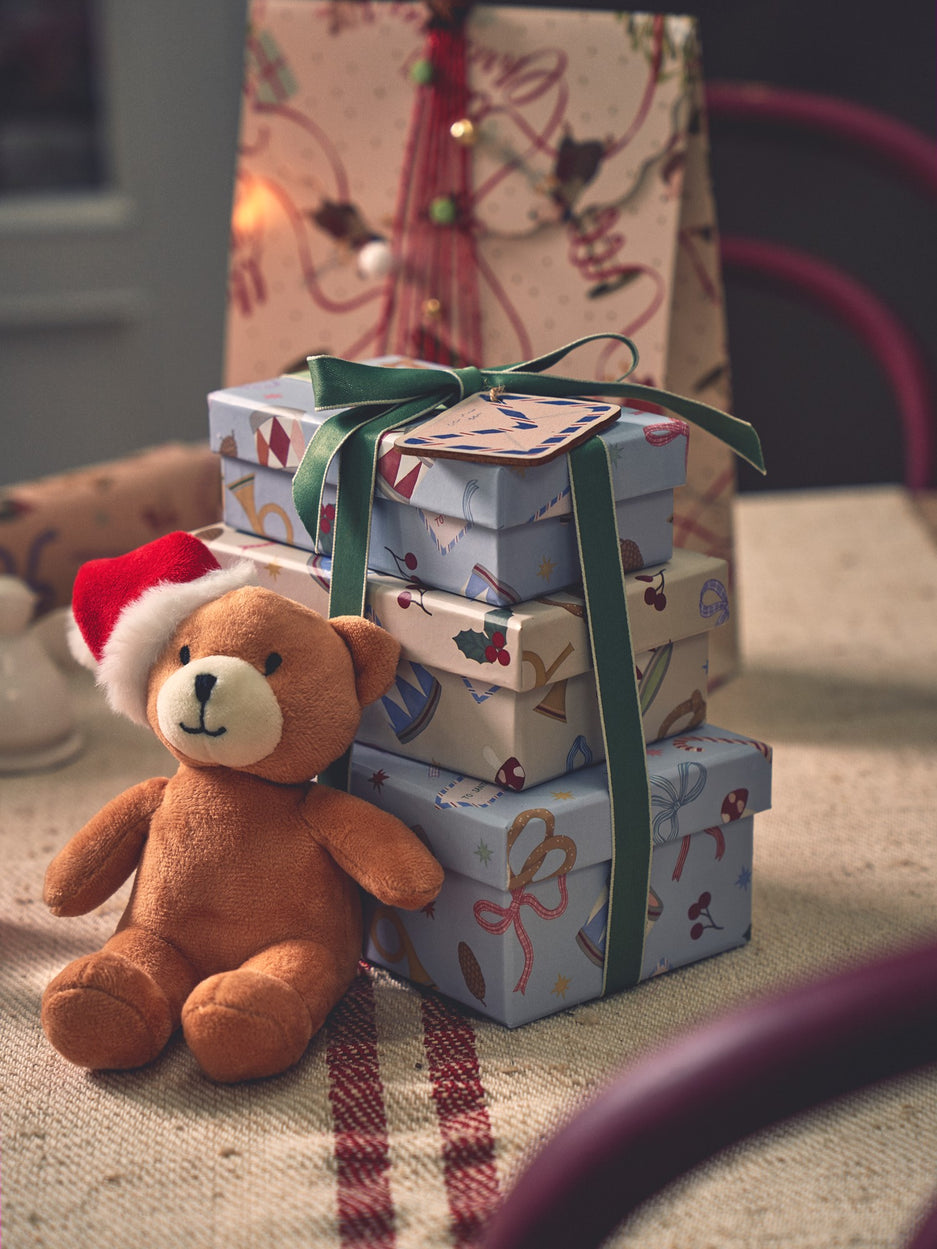 Anna retrieves the box of used gift bags and neatly folded wrapping paper from Christmases past. Clara serves warm tea and Christmas biscuits, and true to tradition, wrapping becomes a shared moment. "The greatest joy is giving," Anna smiles.