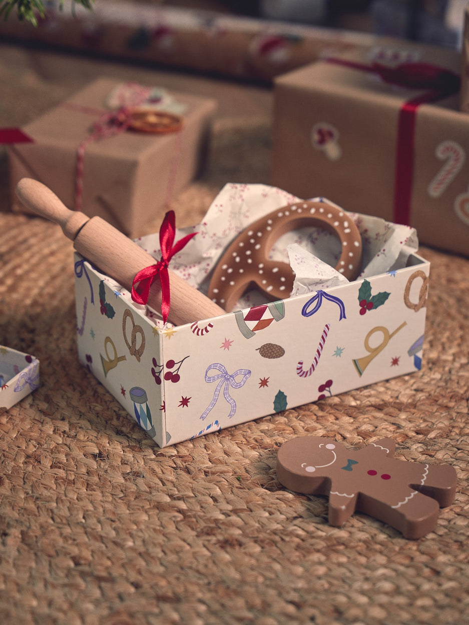 Anna retrieves the box of used gift bags and neatly folded wrapping paper from Christmases past. Clara serves warm tea and Christmas biscuits, and true to tradition, wrapping becomes a shared moment. "The greatest joy is giving," Anna smiles.