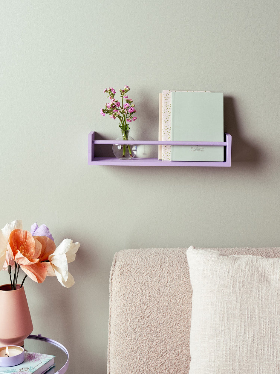 The sisters' wall shelf is made of FSC®-certified pinewood and measures 42 x 10 x 9 cm.