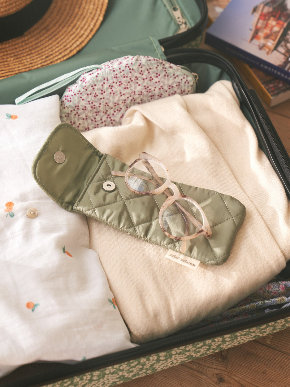 The sisters' glasses case is Made in Green by OEKO-TEX®-certified. It is an ideal companion on the go.