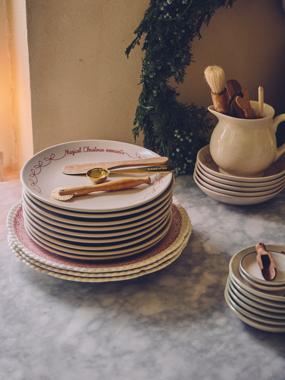"Setting the table beautifully is part of the joy of Christmas," Anna says, placing the festive lunch plates on the table. Clara continues, "These plates bring a touch of warmth to our gatherings, making each meal a cherished moment."