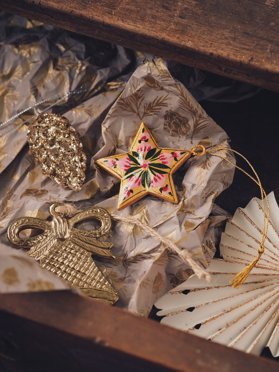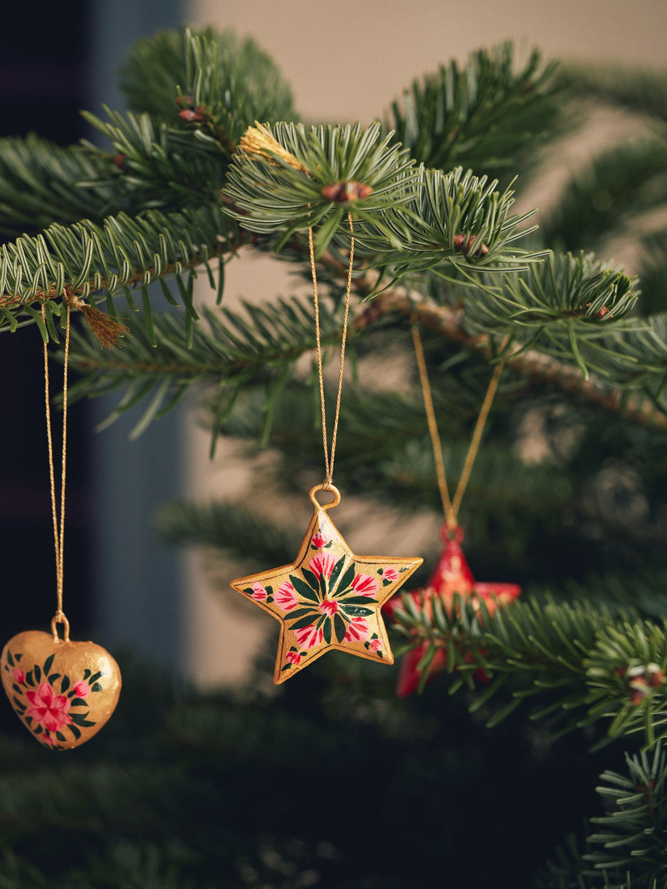 With a gentle hand, Anna retrieves glass baubles, stars, and hearts from the old box of Christmas tree decorations. The sisters reminisce about Christmases past as the tree's branches are adorned one by one with inherited ornaments.