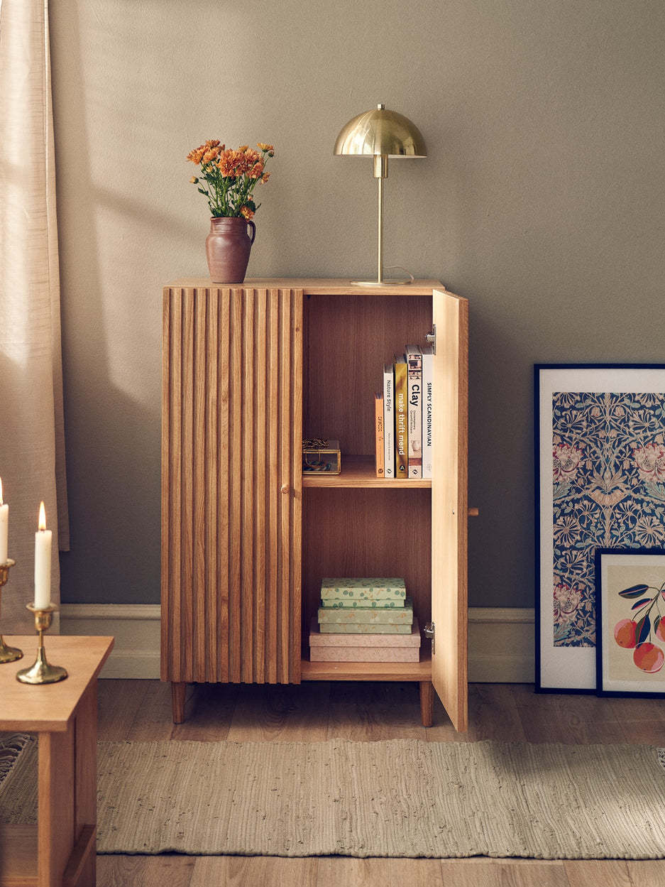 MDF/eikveneer/eik. 57.5 x 33 x 90 cm.