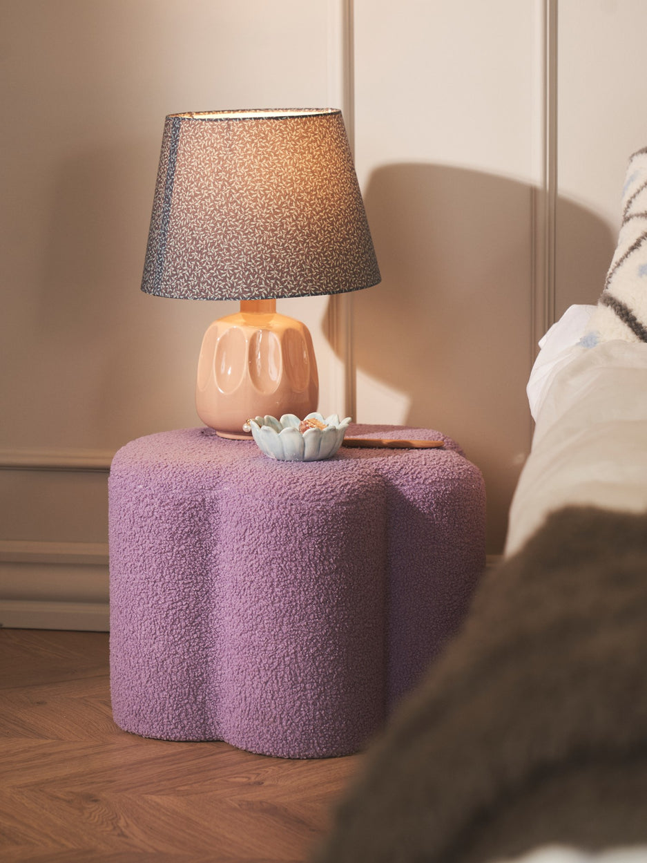After a long day, Clara likes to take a moment to rest. She is especially fond of this lovely pouffe that makes the perfect footrest.
