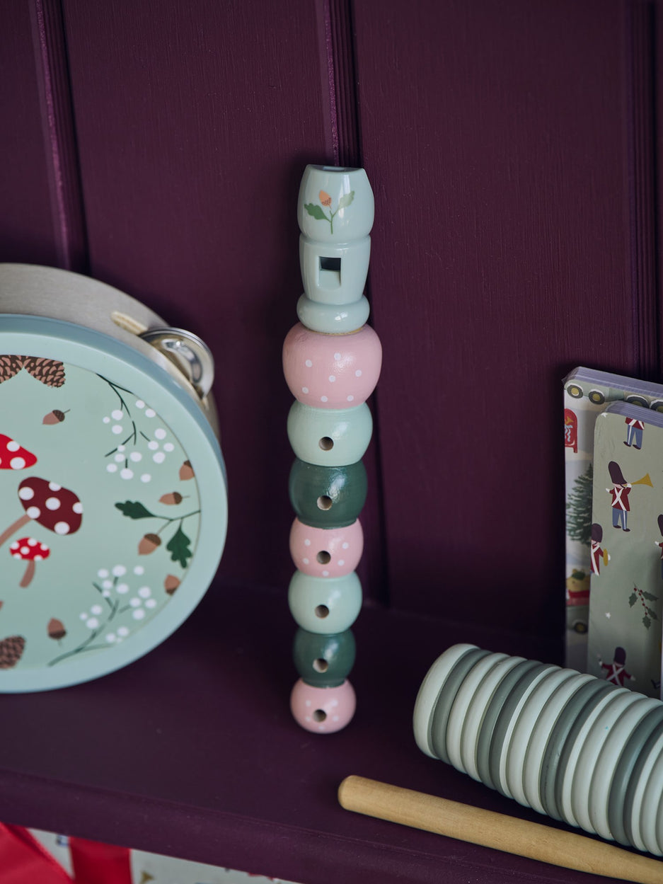 As the nephew happily composes a fun melody on the sisters' musical instruments, the nieces unwrap the fun wooden toys Clara has hidden under the tree. "Toys made of natural materials add such a touch of whimsy to the children's room," she says with a smile.