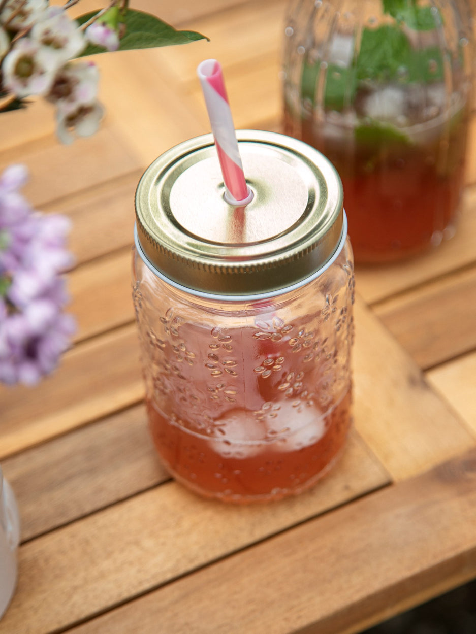 "Enjoy refreshing drinks with a touch of charm," Anna says, admiring the glass with a straw. "And the lid helps prevent spills during outdoor gatherings," Clara adds thoughtfully.