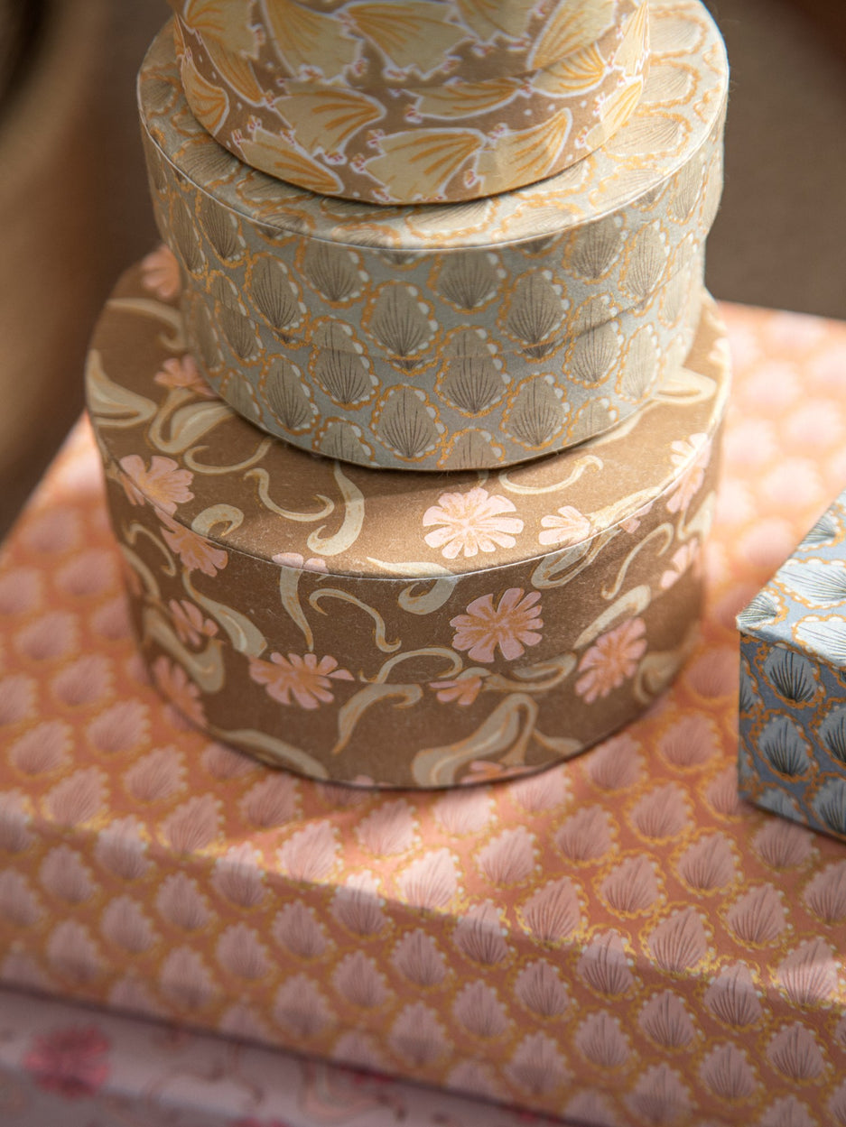 "Gift boxes can be as delightful as the treasures inside," Anna remarks, admiring the round gift box. Clara agrees, "Indeed, they add a touch of charm to any occasion and keep small treasures neatly stored."