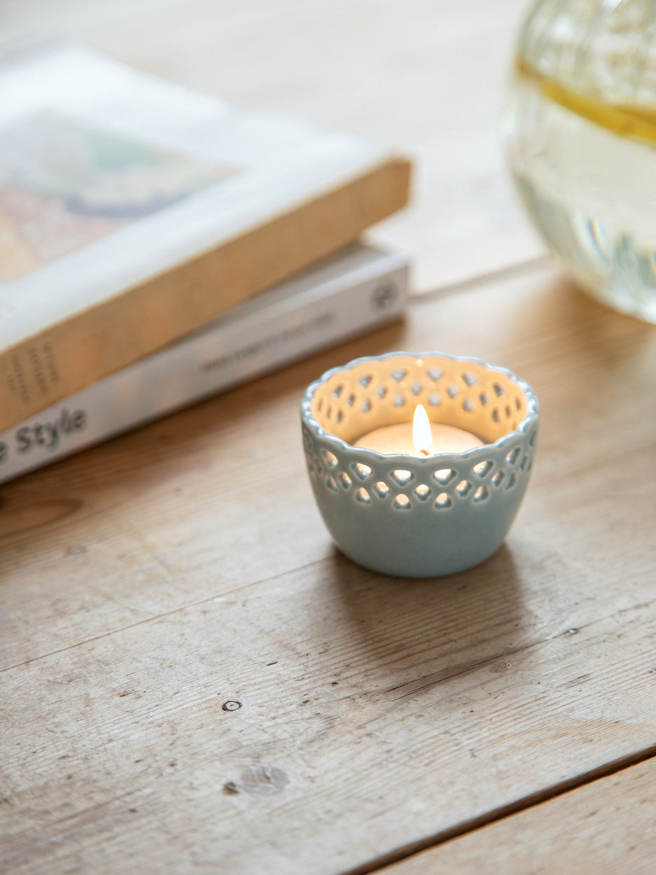"Imagine the soft glow of candlelight dancing through this intricate tealight holder," Anna says dreamily. "A charming addition to any cosy corner," Clara adds, admiring the elegant design.