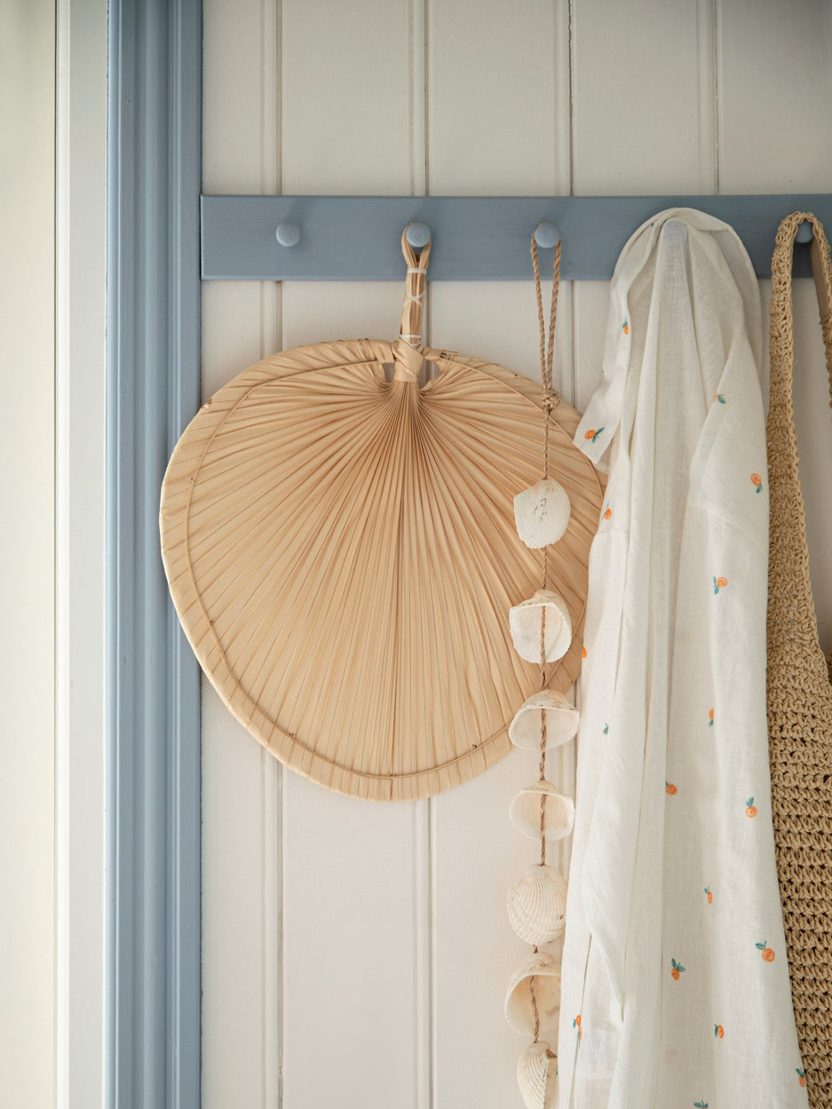 "Such a charming addition to any room," Anna marvels, admiring the decorative wall fan. "It brings a touch of elegance and a gentle breeze of style," Clara says softly.
