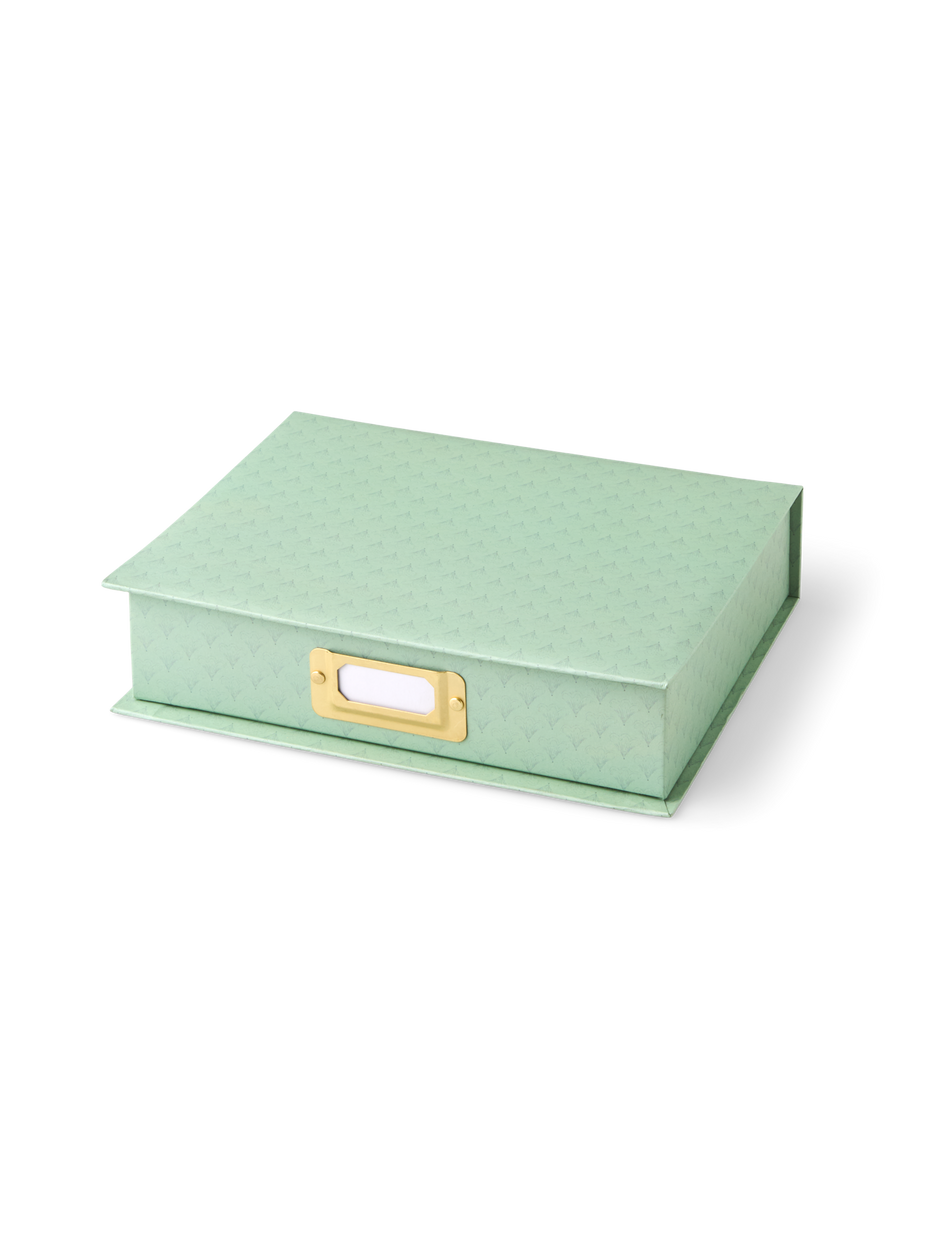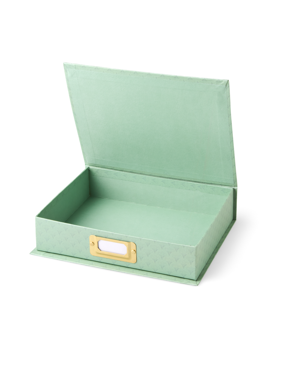 Pappír/málmur. 25 x 19.5 x 6 cm.