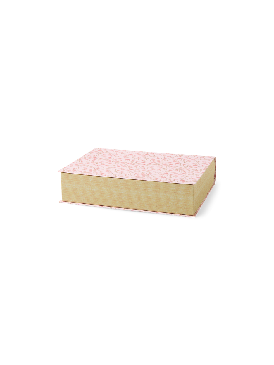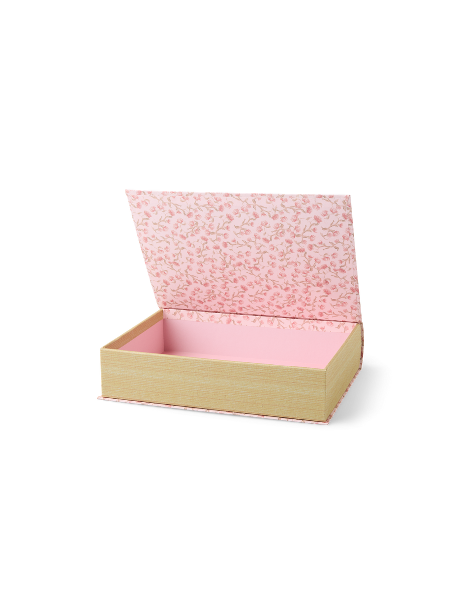 Anna gently opens the book box, her eyes sparkling with curiosity. "A charming way to conceal little treasures or keepsakes upon the shelf," she says.