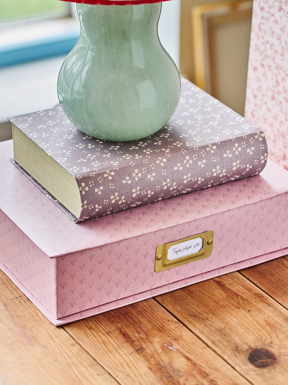 A book box rests quietly on the shelf, blending charm with clever storage. "It keeps treasured letters and keepsakes hidden in plain sight," Anna remarks.