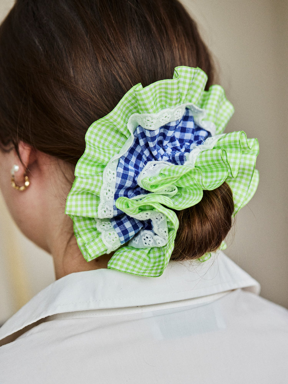 "Such a charming way to add a touch of elegance to any hairstyle," Anna says, admiring the hair scrunchie. "And it keeps hair neatly in place during busy days," Clara adds with a nod.